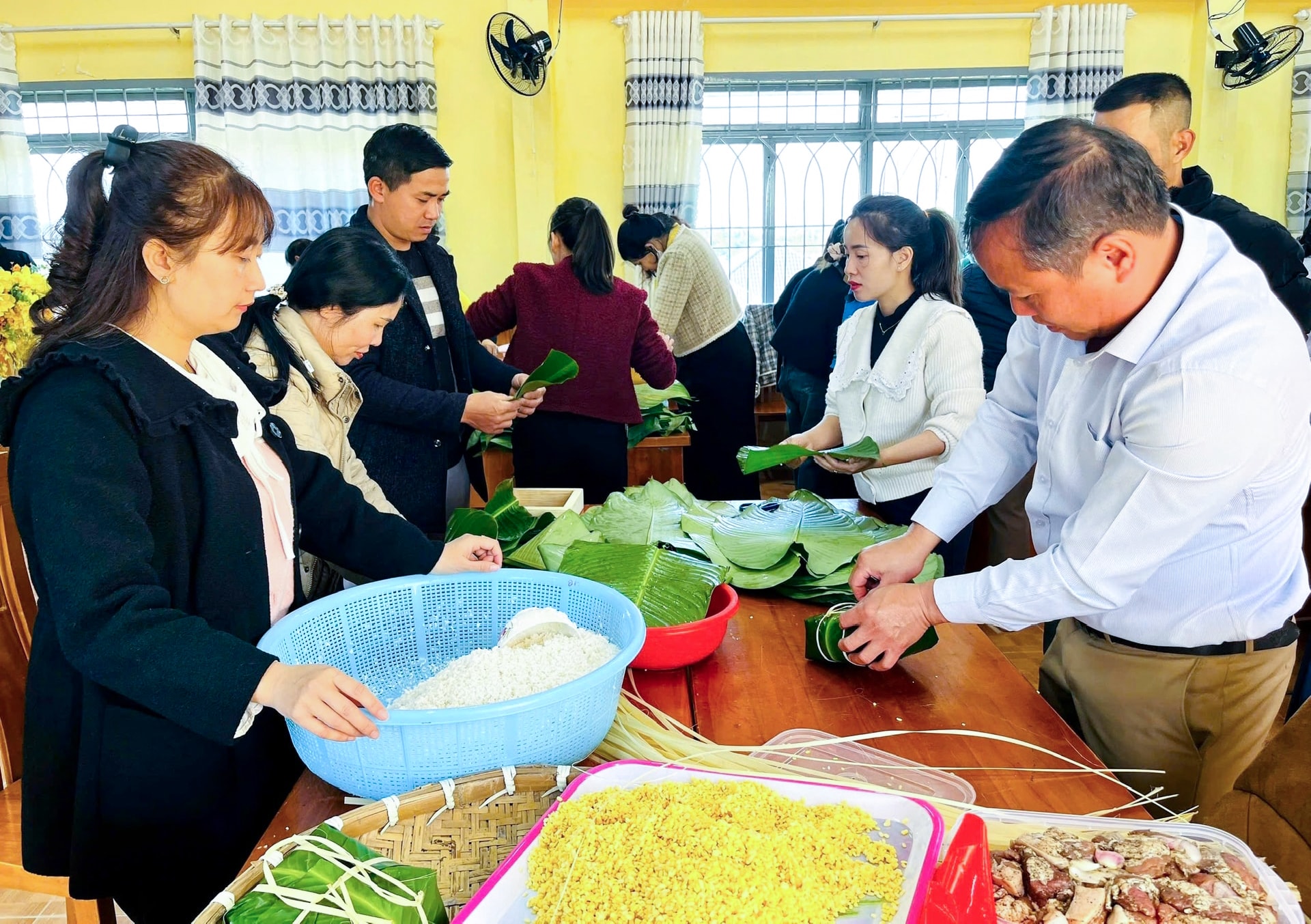 Xã Lạc Dương gói bánh chưng tặng hộ nghèo, cận nghèo, hộ có hoàn cảnh khó khăn.