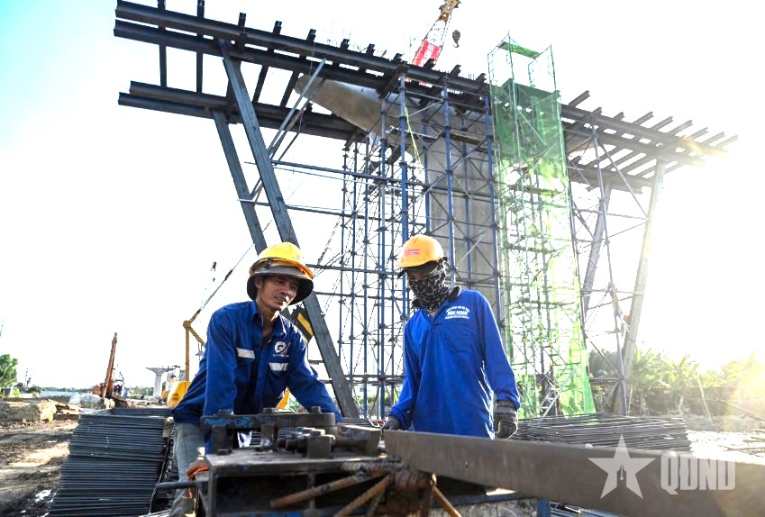 Công nhân thi công dự án đường Vành đai 3 - TP Hồ Chí Minh. Ảnh: NGUYỄN LÊ