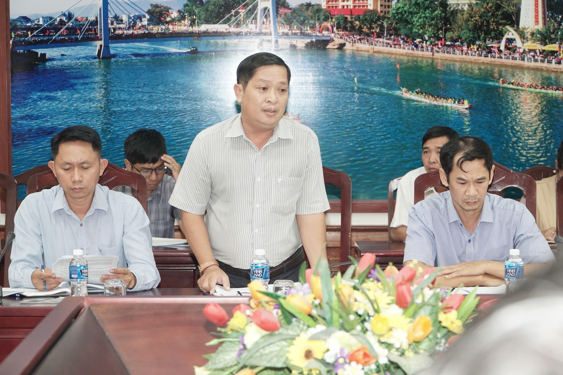 Lãnh đạo phường Bình Thuận báo cáo tại cuộc họp