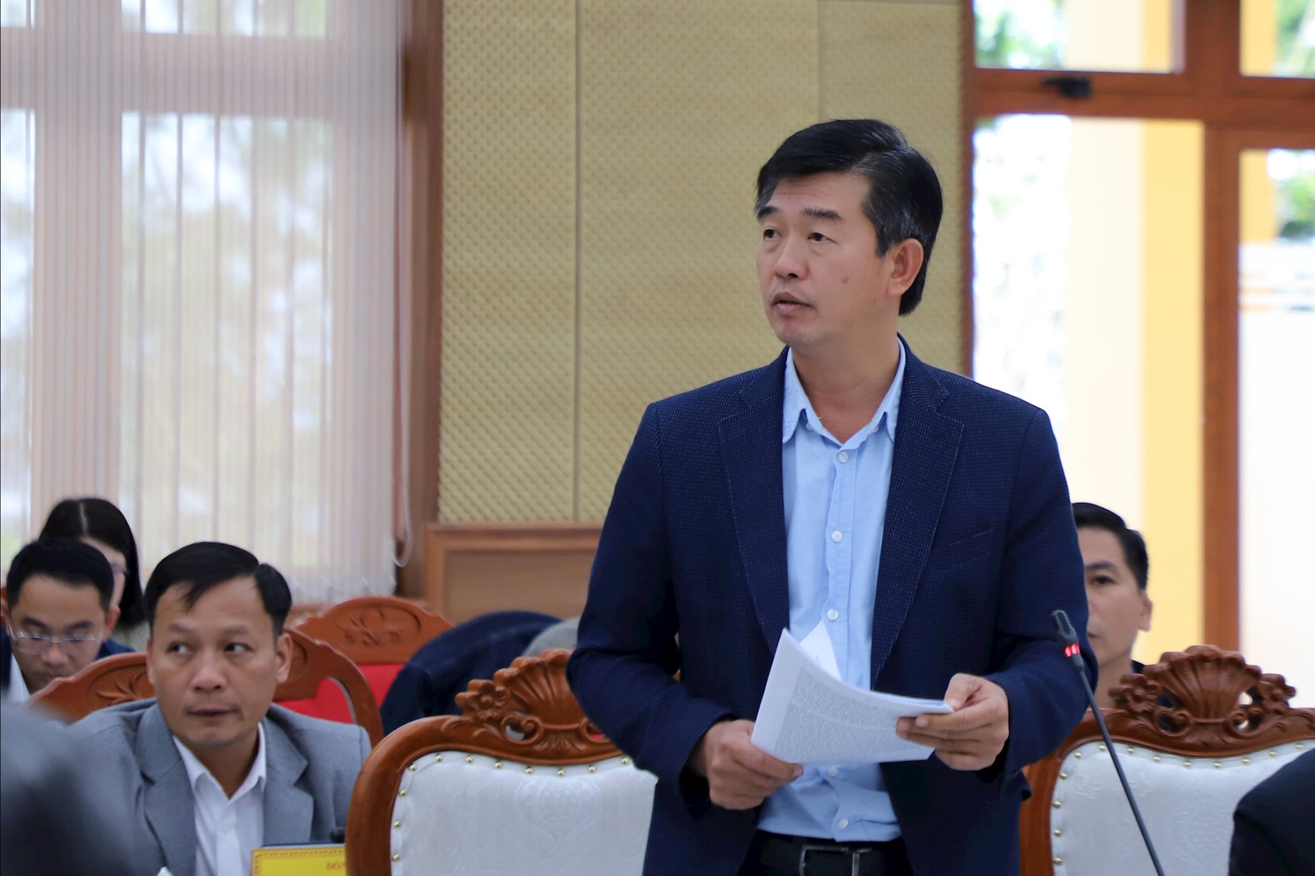 Giám đốc Sở Tài chính Tôn Thiện San báo cáo tình hình thu ngân sách của tỉnh