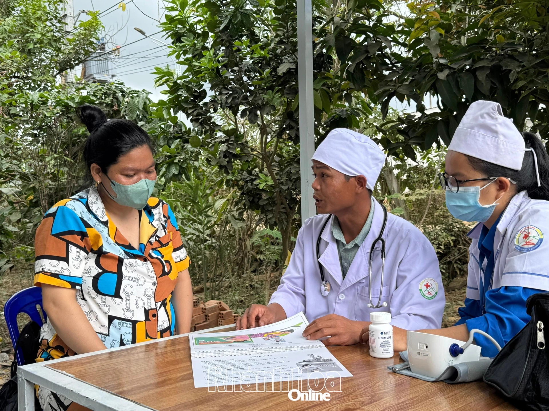 Cán bộ y tế Trung tâm Y tế khu vực Khánh Sơn tư vấn chăm sóc sức khỏe tại nhà cho thai phụ.