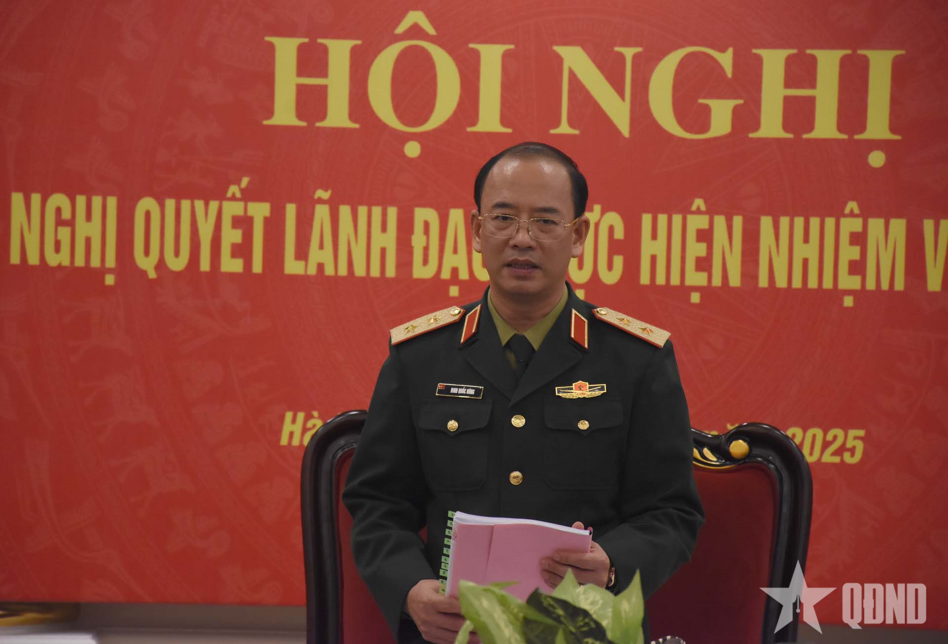 Trung tướng Đinh Quốc Hùng, Bí thư Đảng ủy, Chính ủy Tổng cục CNQP chủ trì hội nghị.