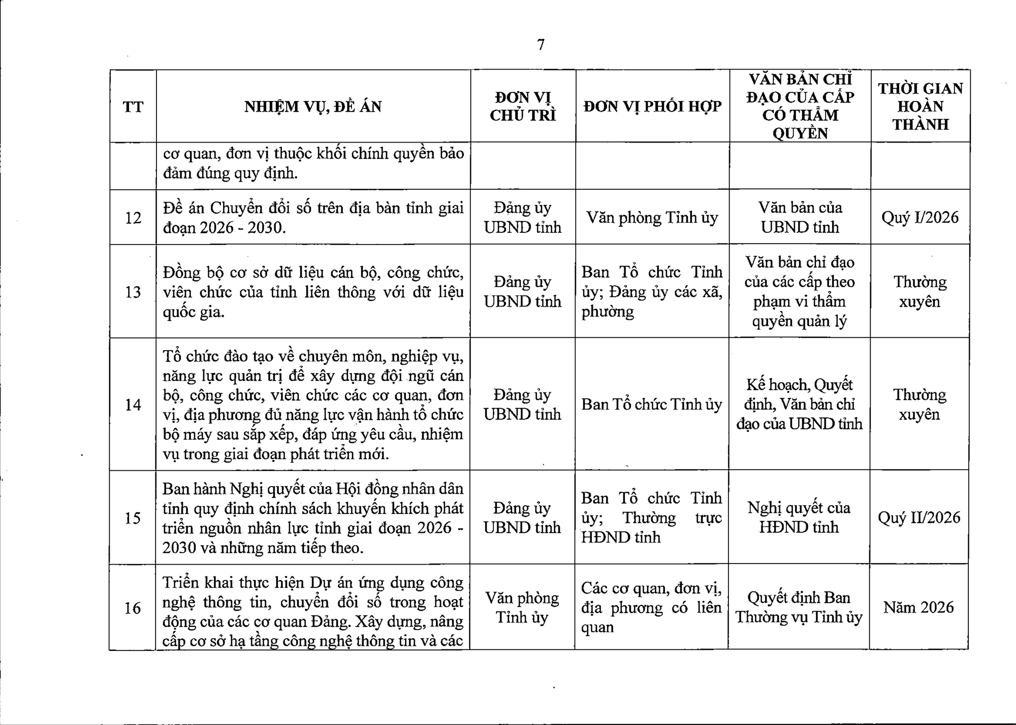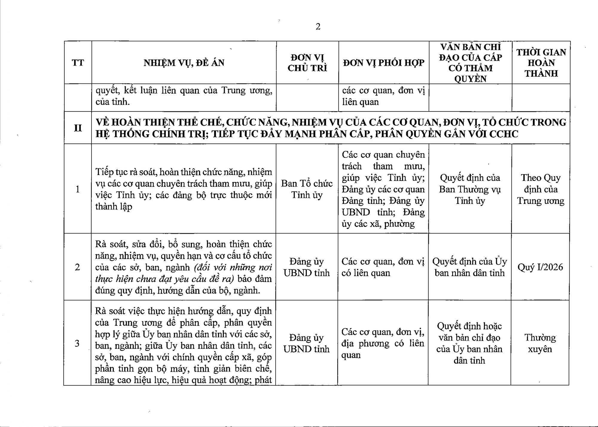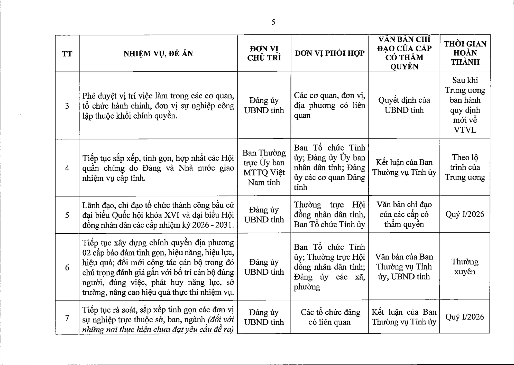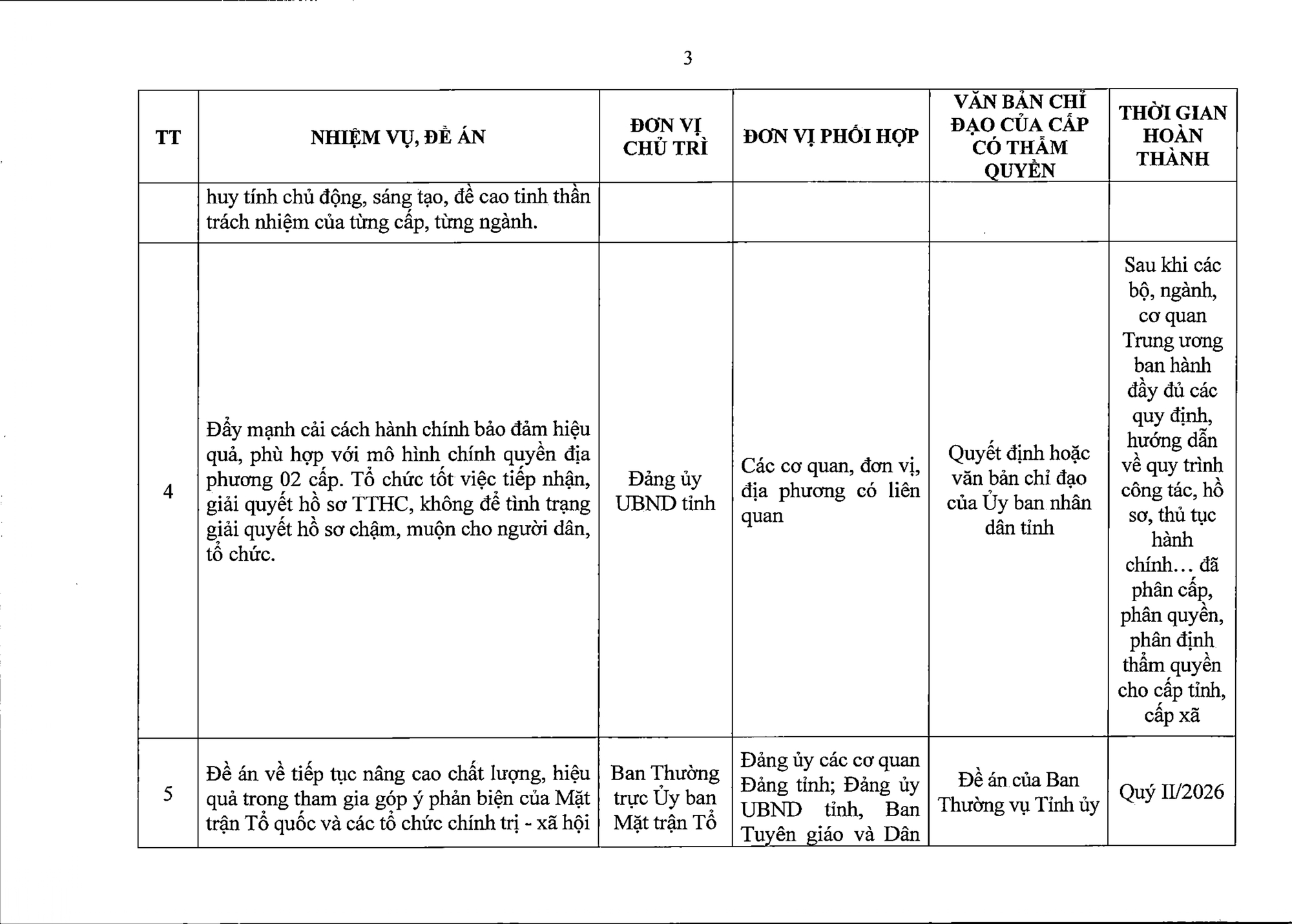 Chương trình hành động đề ra 04 nhóm nhiệm vụ trọng tâm với 31 nhiệm vụ, thời hạn hoàn thành cụ thể ngay trong Quý I và Quý II năm 2026. Điều này thể hiện tinh thần làm việc khẩn trương, trách nhiệm, không né tránh khó khăn của hệ thống chính trị tỉnh Nghệ An trước yêu cầu đổi mới.