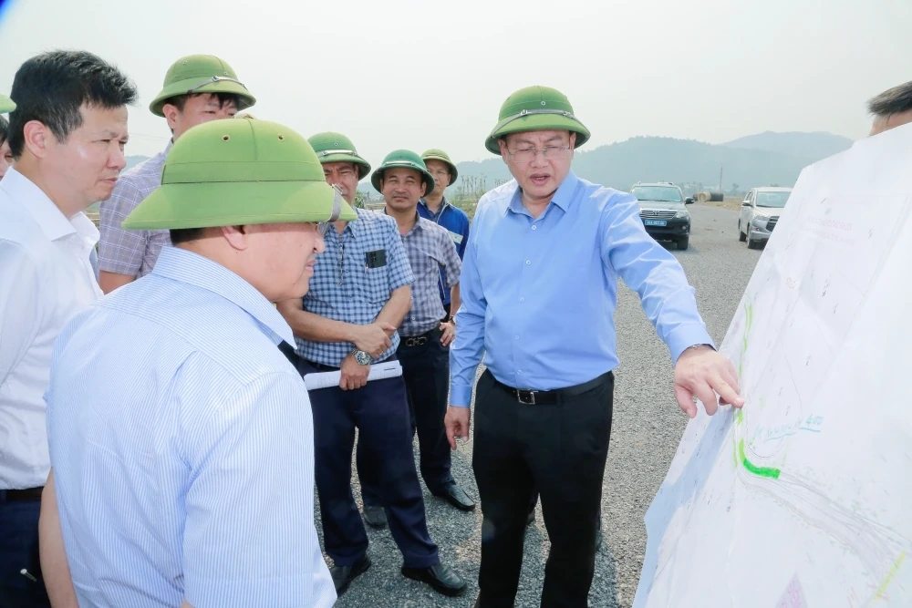 Phó Chủ tịch Thường trực UBND tỉnh Mai Xuân Liêm và đoàn công tác kiểm tra tiến độ thực hiện tuyến số 2 đường Nghi Sơn - Bãi Trành đoạn từ cầu Hổ đến đường cao tốc Bắc - Nam phía Đông