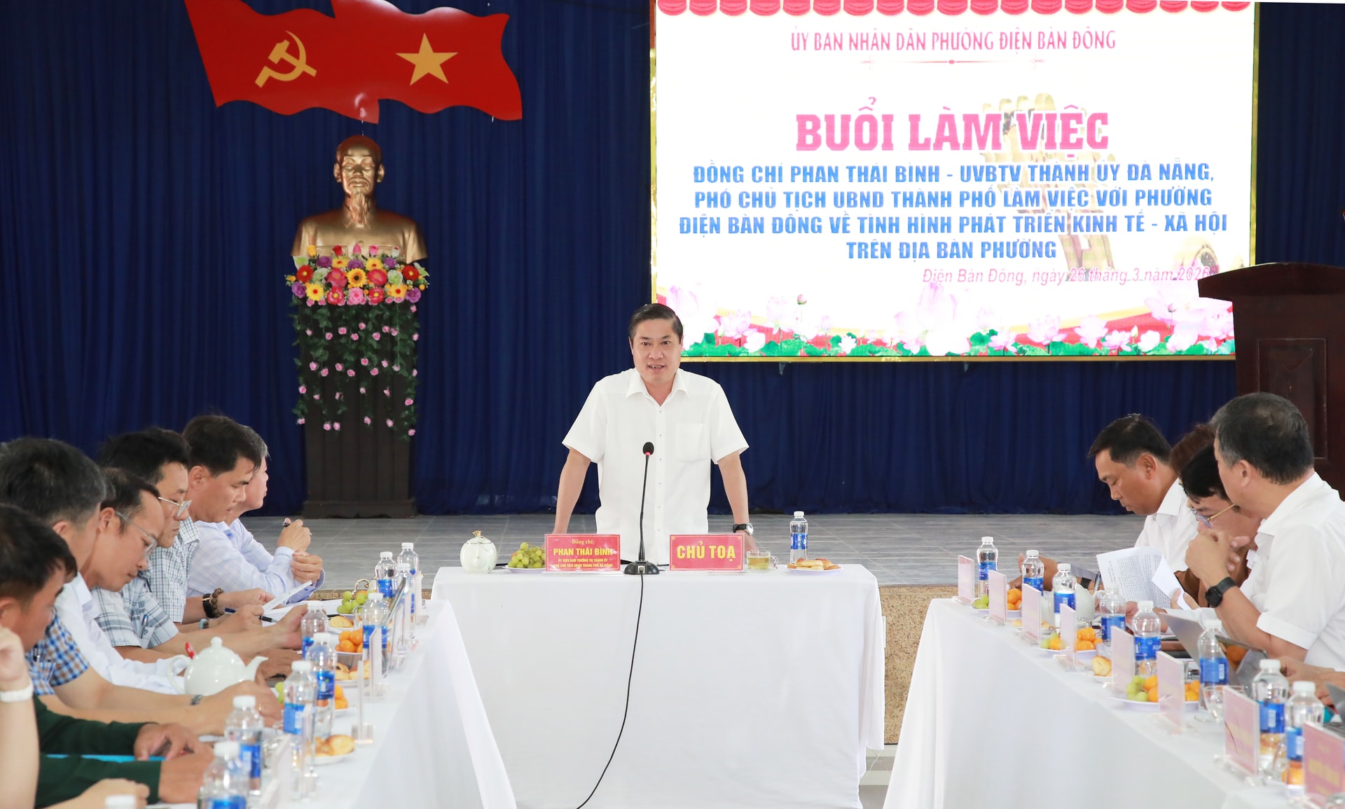 Phó Chủ tịch UBND thành phố Phan Thái Bình phát biểu kết luận buổi làm việc với phường Điện Bàn Đông. Ảnh: ĐẮC MẠNH
