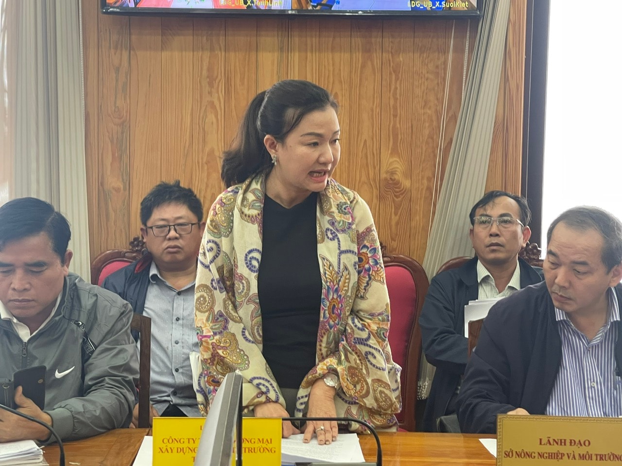Đại diện Công ty TNHH Thương mại Xây dựng xử lý Môi trường Đồng Thuận Phát báo cáo tại cuộc họp