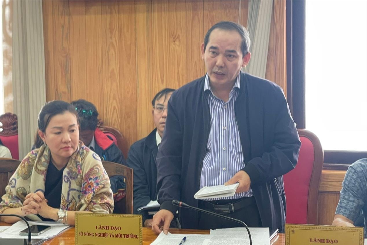 Đại diện lãnh đạo Sở Nông nghiệp và Môi trường phát biểu tại cuộc họp