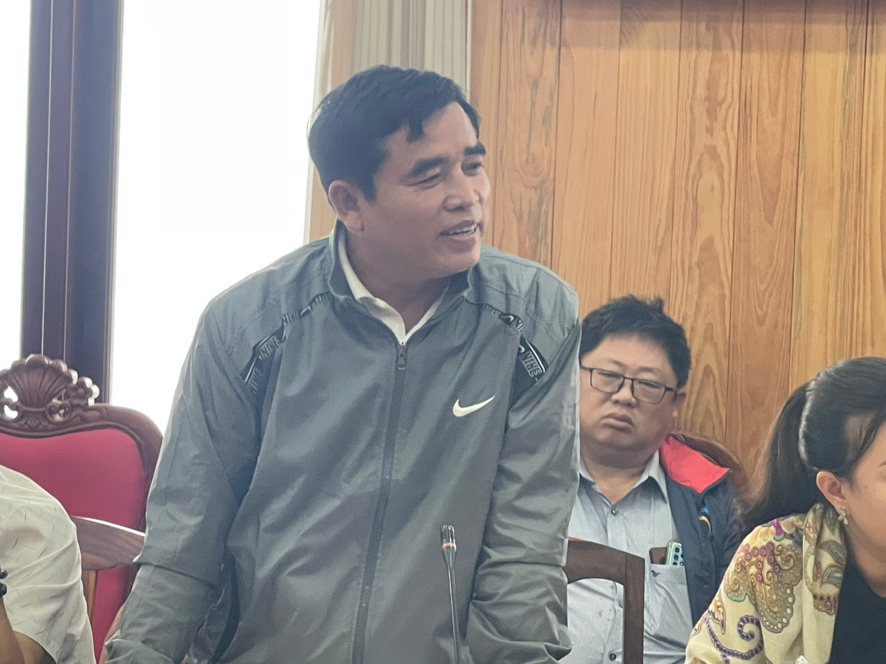 Đại diện Công ty TNHH TM-XD Xử lý Môi trường Thanh Long nêu kiến nghị, đề xuất tháo gỡ khó khăn tại buổi họp