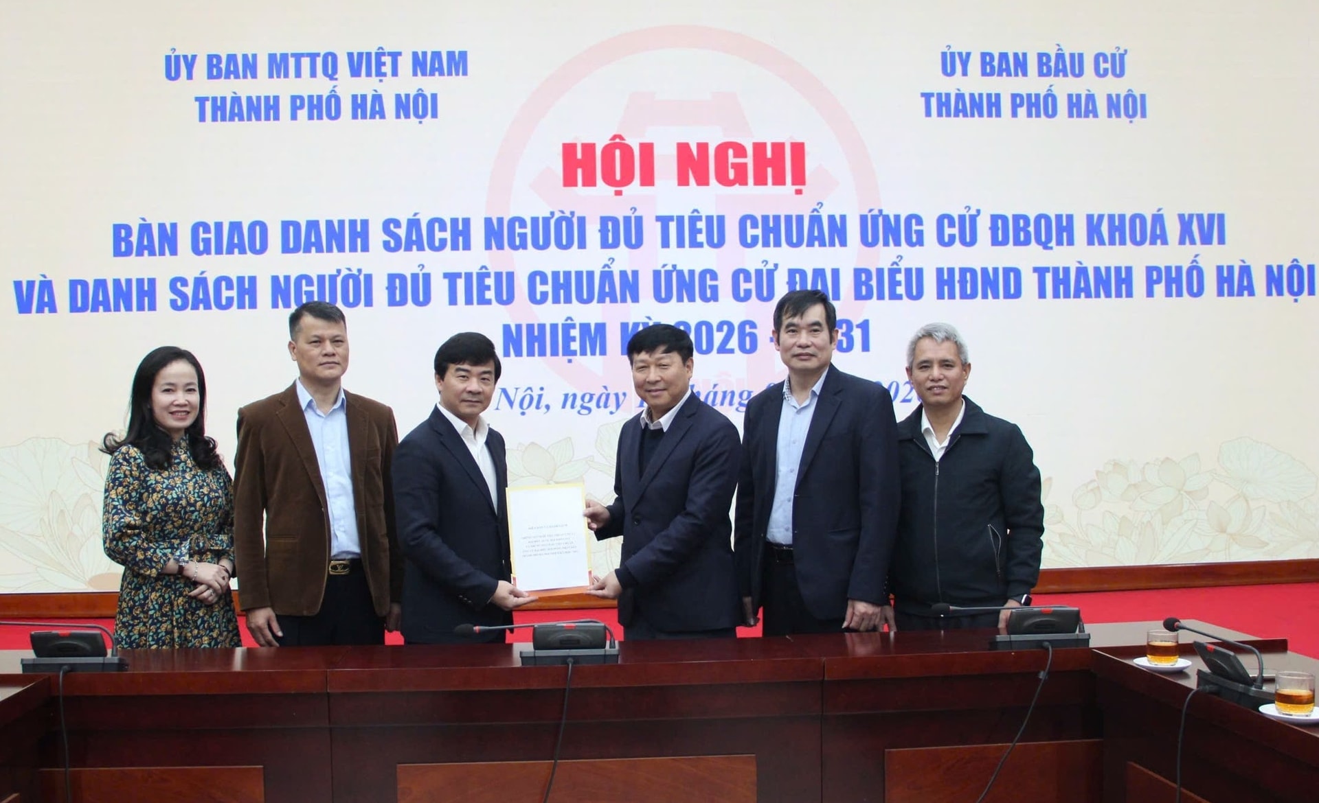 Hội nghị bàn giao hồ sơ danh sách người đủ tiêu chuẩn ứng cử đại biểu Quốc hội khóa XVI và đại biểu HĐND thành phố Hà Nội nhiệm kỳ 2026 - 2031. Ảnh: D. Nguyện