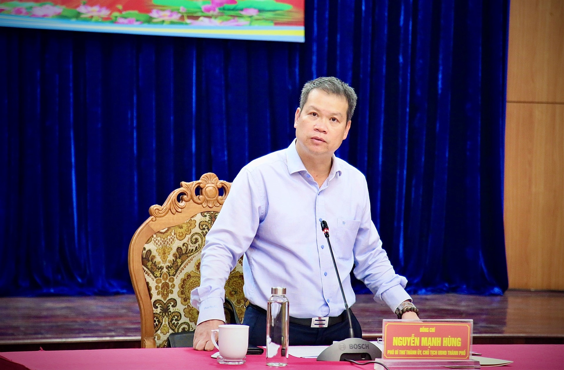 Chủ tịch UBND thành phố Nguyễn Mạnh Hùng phát biểu tại buổi làm việc. Ảnh: ALĂNG NGƯỚC