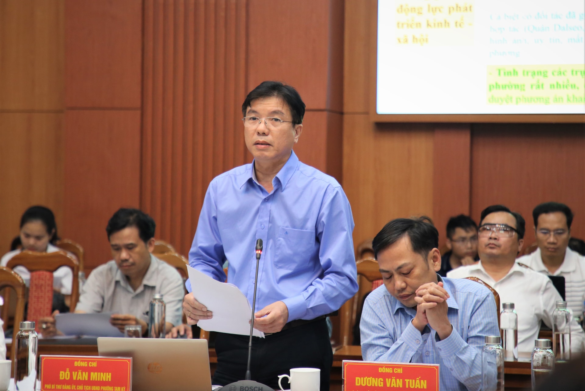 Chủ tịch UBND phường Tam Kỳ Đỗ Văn Minh đại diện 4 phường báo cáo tại buổi làm việc. Ảnh: ALĂNG NGƯỚC