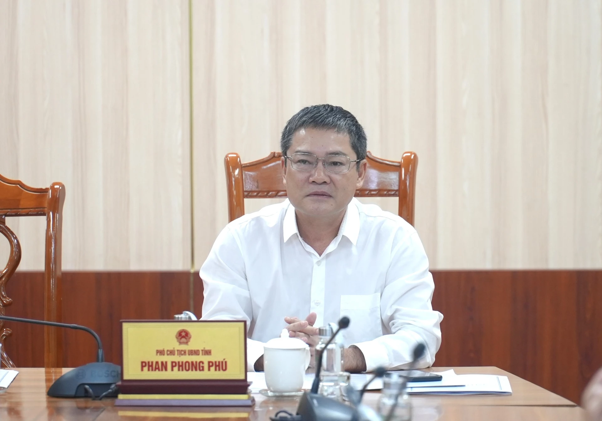 Đồng chí Phó Chủ tịch UBND tỉnh Phan Phong Phú dự cuộc họp tại điểm cầu Quảng Trị - Ảnh: Trung Đức