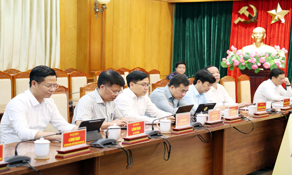 Hội nghị được kết nối trực tuyến đến điểm cầu 99 xã, phường của tỉnh.