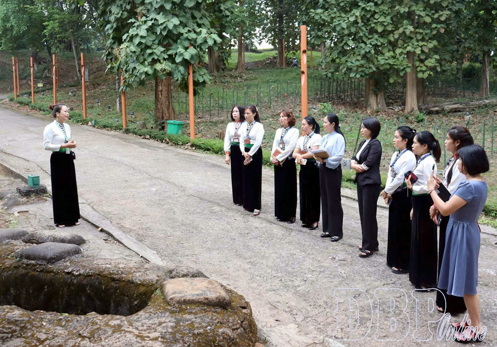 Hướng dẫn viên giới thiệu tại di tích lịch sử Đồi A1. Ảnh: Minh Thảo