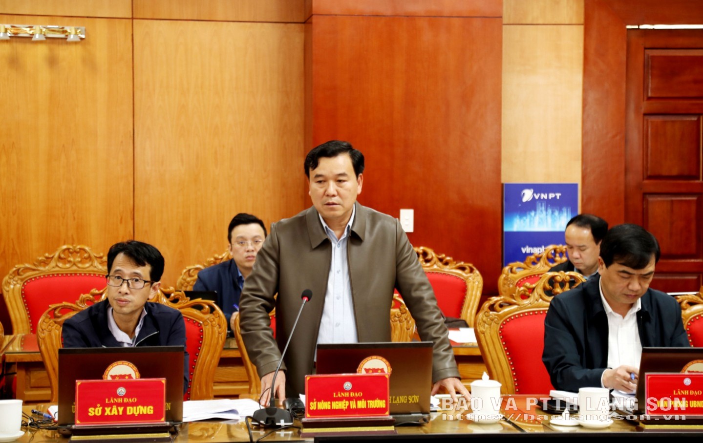 Lãnh đạo Sở Nông nghiệp và Môi trường báo cáo một số nội dung liên quan tại cuộc họp