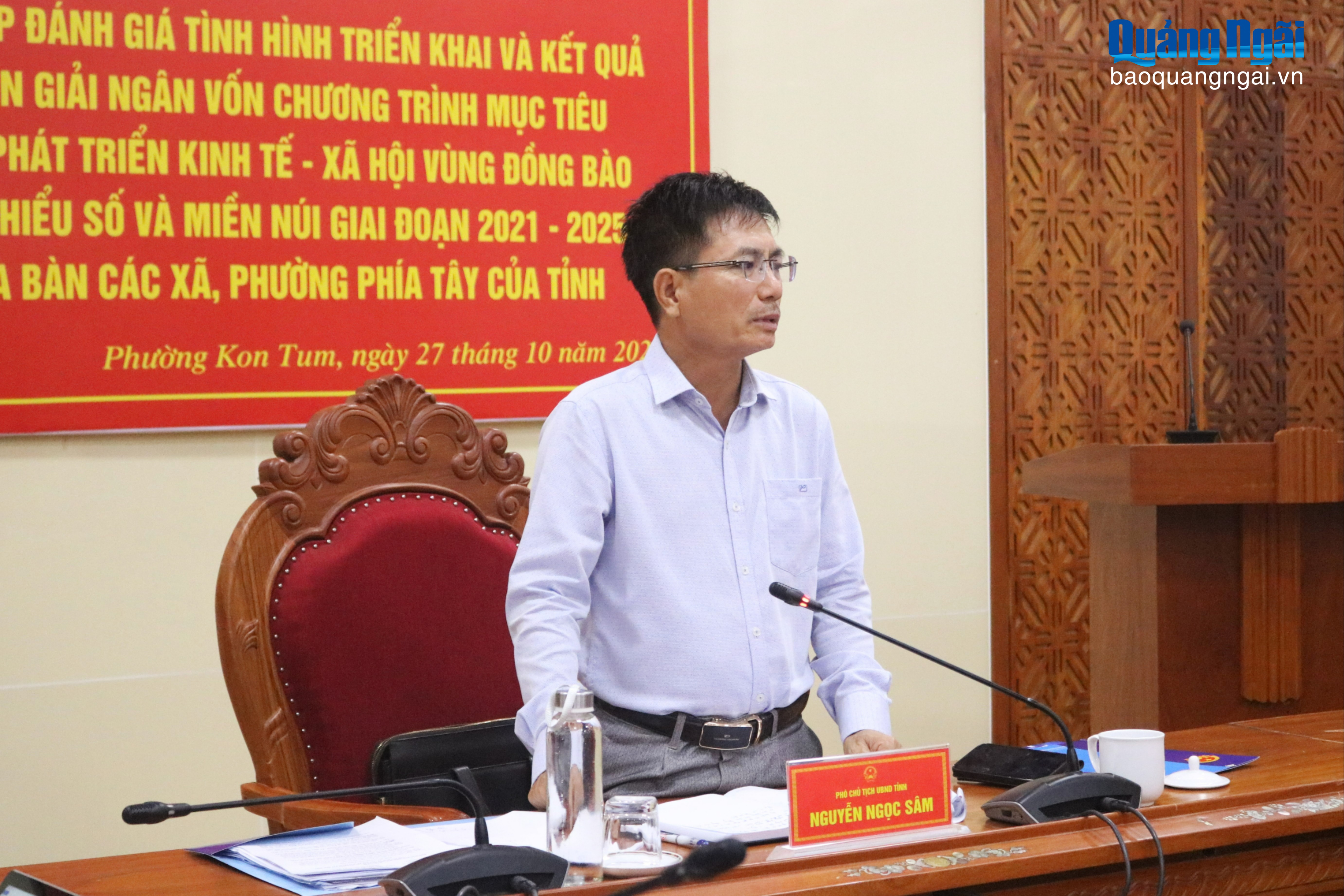 Phát biểu kết luận cuộc họp, Phó Chủ tịch UBND tỉnh Nguyễn Ngọc Sâm ghi nhận nỗ lực của các sở, ngành, địa phương trong việc triển khai Chương trình MTQG phát triển kinh tế, xã hội vùng đồng bào dân tộc thiểu số và miền núi, giai đoạn 2021 - 2025.