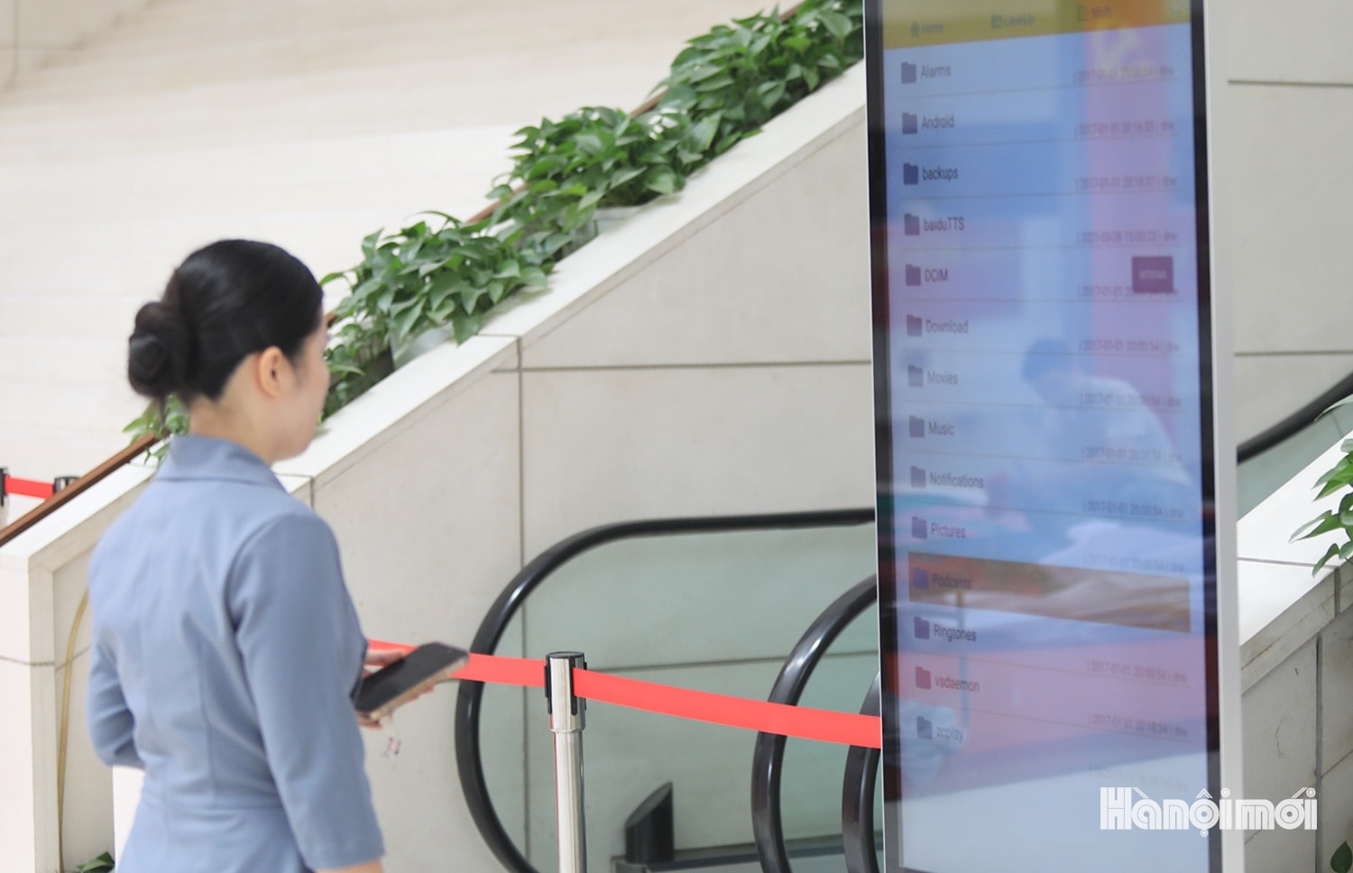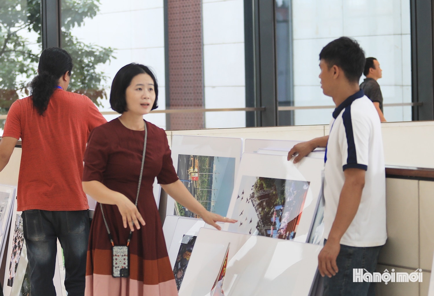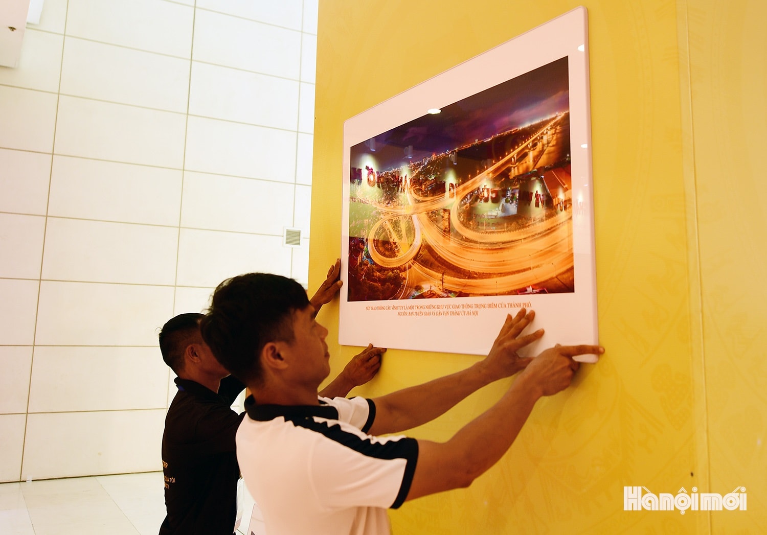 Chuẩn bị không gian trưng bày những hình ảnh đẹp của thành phố Hà Nội.