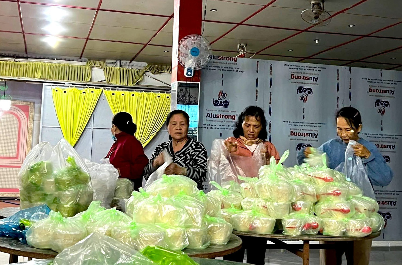 Hơn 1.000 phần xôi đang được đóng gói do bà con tại phường Buôn Hồ thức nấu suốt đêm qua để gửi tới đồng bào chịu ảnh hưởng của mưa lũ tại tỉnh Đắk Lắk.