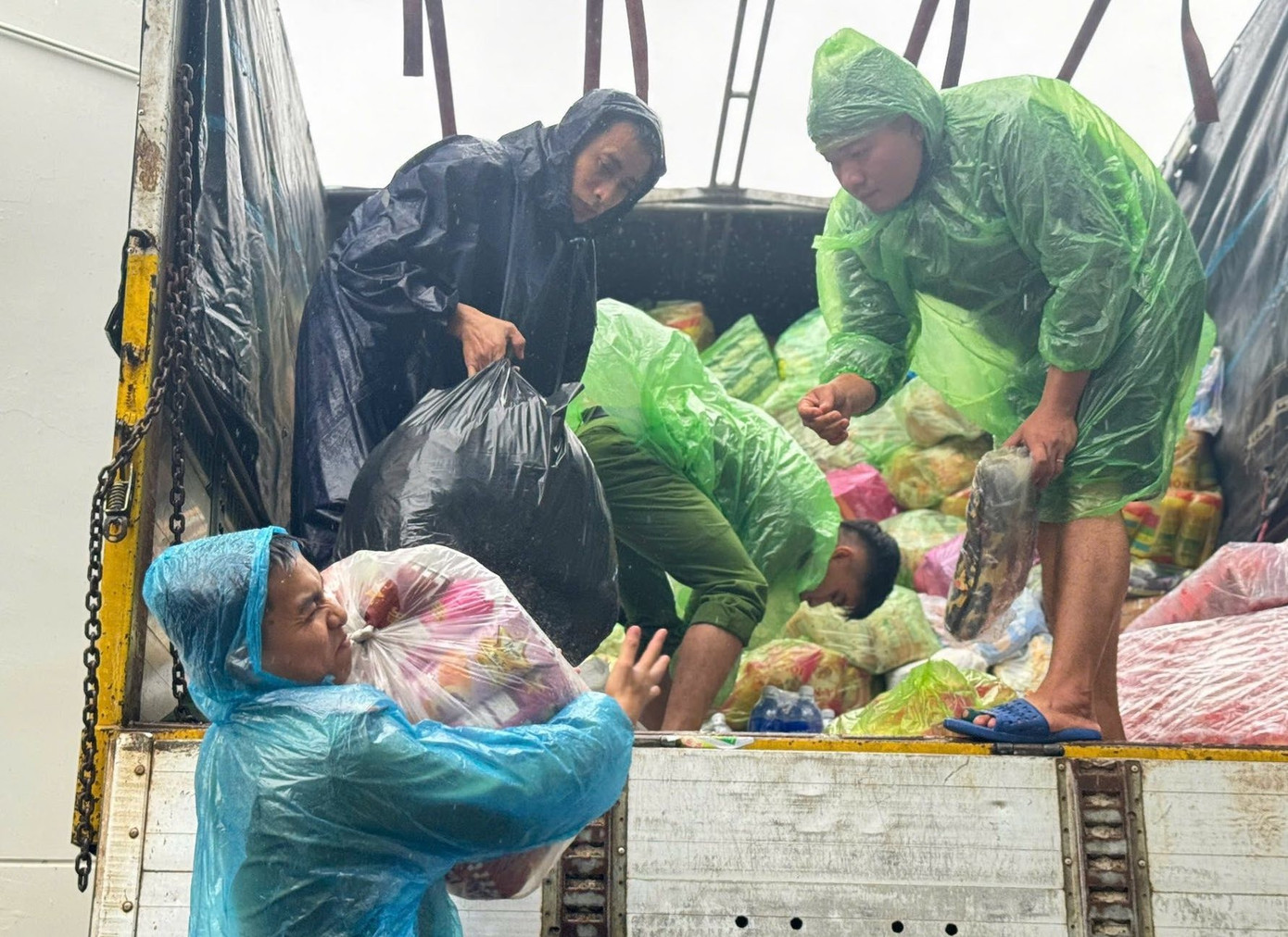 15 tấn hàng cứu trợ của các tổ chức, cá nhân đã được vận chuyển an toàn về điểm tập kết tại công an phường Tuy Hòa, tỉnh Đắk Lắk. Ngay khi xe hàng tới nơi, đoàn viên thanh niên cùng cán bộ phường Tuy Hòa khẩn trương triển khai bóc dỡ, phân loại và vận chuyển hàng hóa đến từng khu vực cần hỗ trợ dưới mưa lạnh.