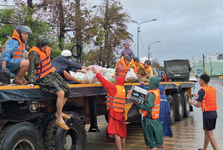 Bộ đội Bộ Chỉ huy Quân sự tỉnh Khánh Hòa chuyển lương thực cho lực lượng cứu hộ tiếp tế cho bà con.