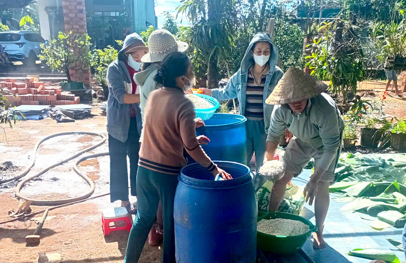 Các chị em phụ nữ gác lại công việc đồng áng để chung tay hỗ trợ người dân vùng lũ. Theo anh Hổ, những chiếc bánh chưng được gửi đến cho bà con phía đông Gia Lai, Đắk Lắk, Khánh Hòa...
