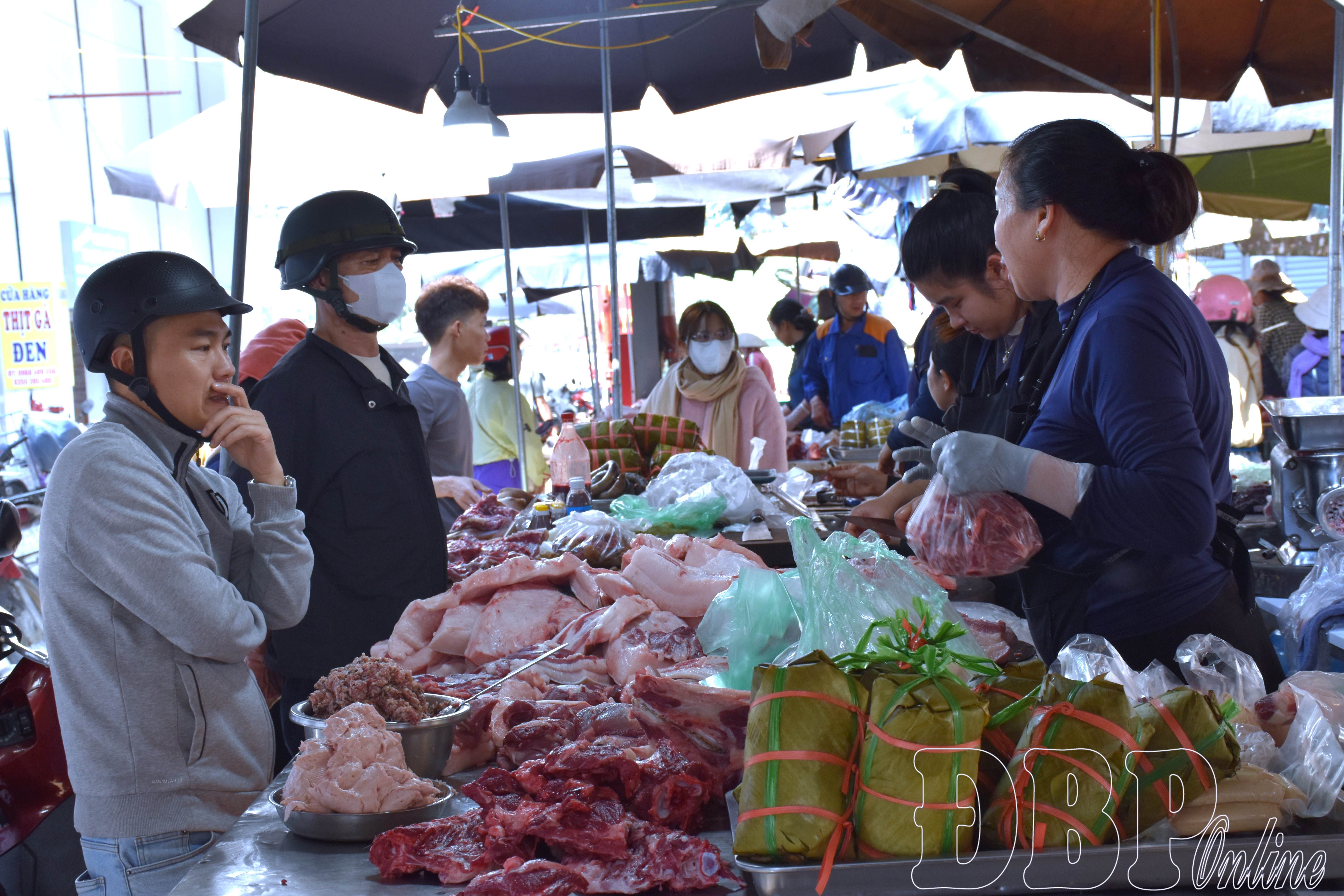 Tại các chợ, khu vực bán hàng thực phẩm như: Rau xanh, thịt lợn, thịt gà, cá, giò chả, trứng… luôn trong tình trạng đông khách, nhiều tiểu thương phải bổ sung hàng liên tục trong ngày để đáp ứng nhu cầu tăng cao. Các gian hàng quần áo, đồ gia dụng, đồ trang trí tết cũng thu hút đông đảo người dân đến mua sắm, tạo không gian rực rỡ những ngày giáp tết.