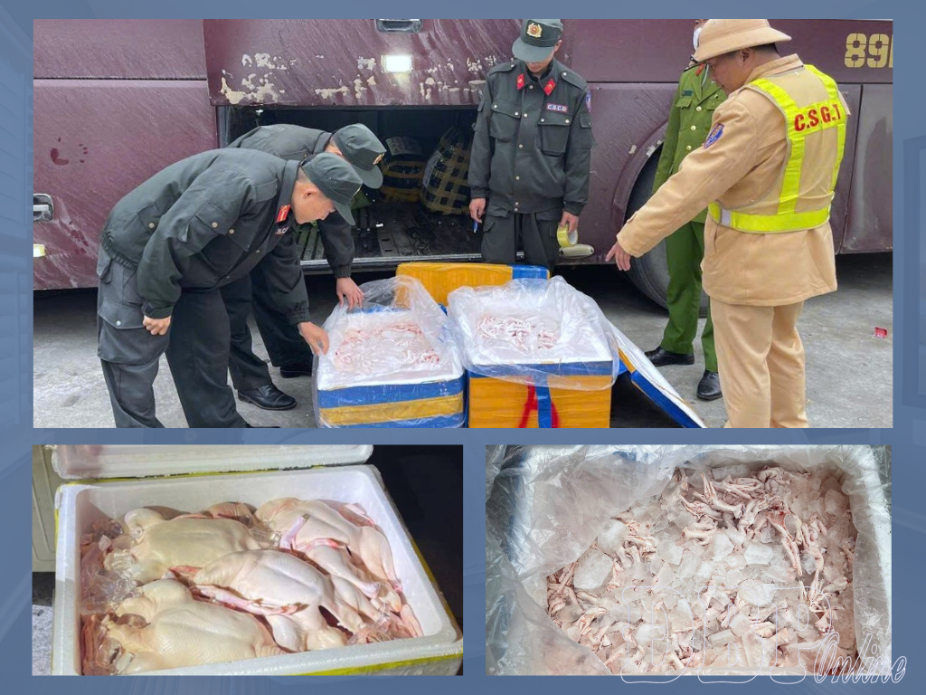 Điển hình ngày 10/2 vừa qua, quá trình tuần tra, kiểm soát tại tại Km379+250, địa phận xã Quài Tở, Tổ công tác số 1, Kế hoạch số 1266 (Công an tỉnh) thu giữ gần 1 tấn thực phẩm không rõ nguồn gốc gồm: Thịt lợn, vịt, chân gà và nhiều loại hoa quả vận chuyển lên địa bàn tỉnh Điện Biên tiêu thụ.