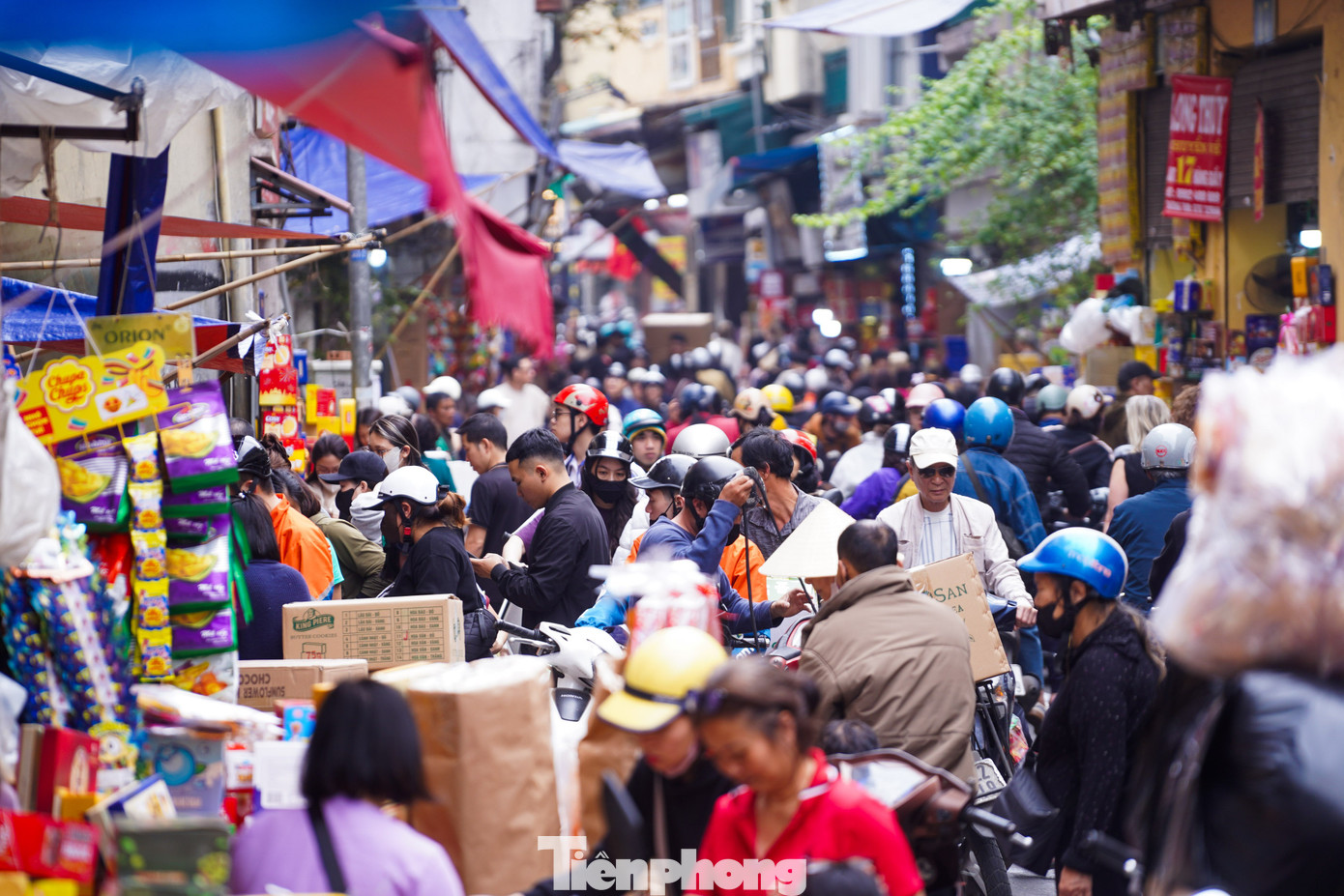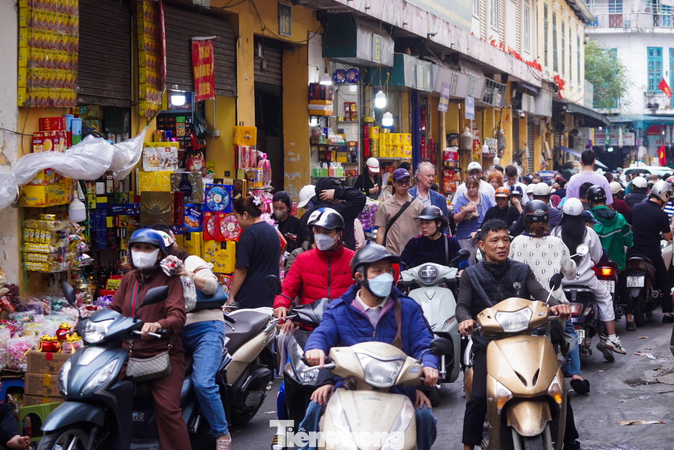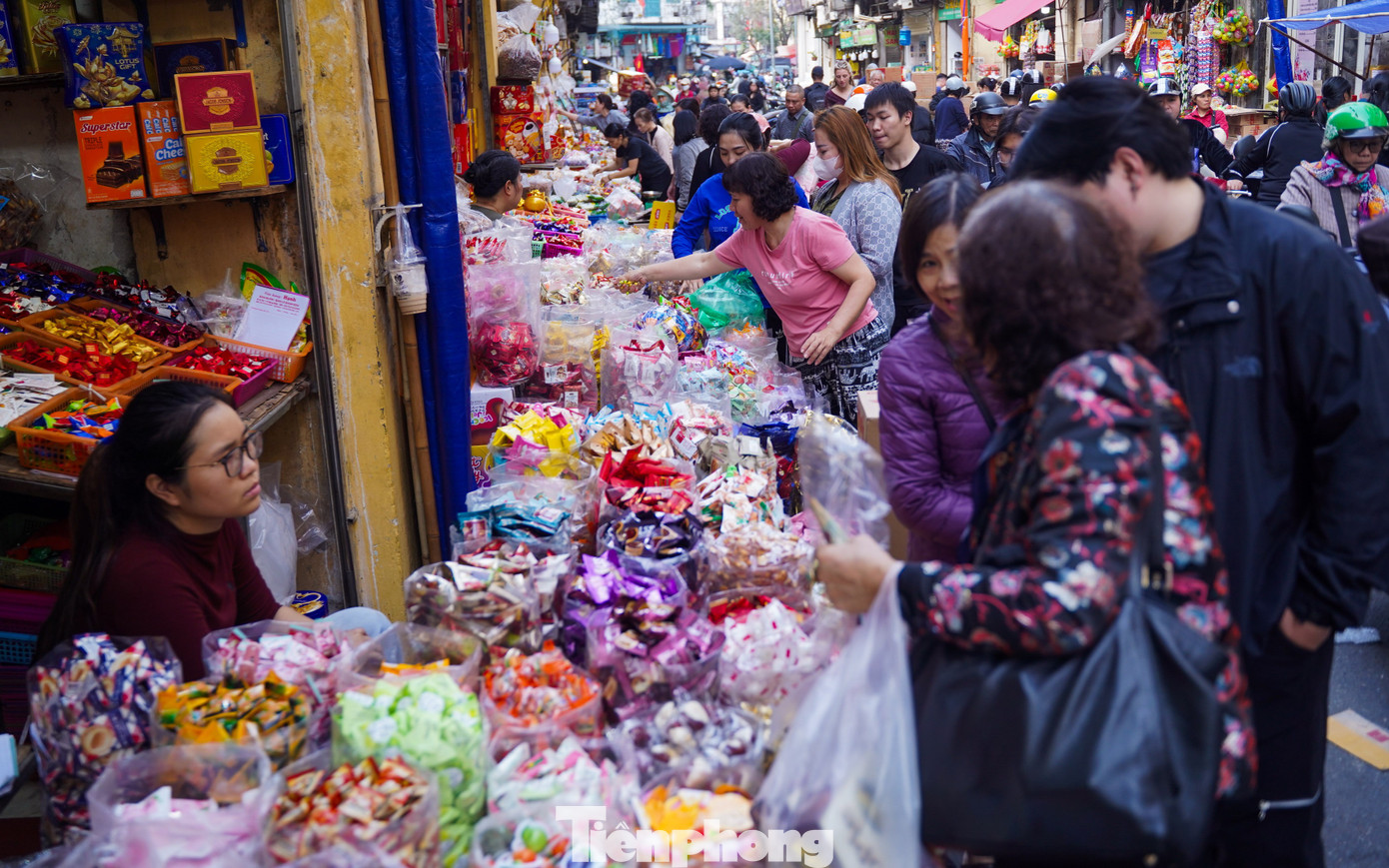 Hơn một tuần trước Tết Bính Ngọ, phố Hàng Giày, Hàng Buồm (Hà Nội) tấp nập người mua, kẻ bán bánh kẹo, mứt Tết.