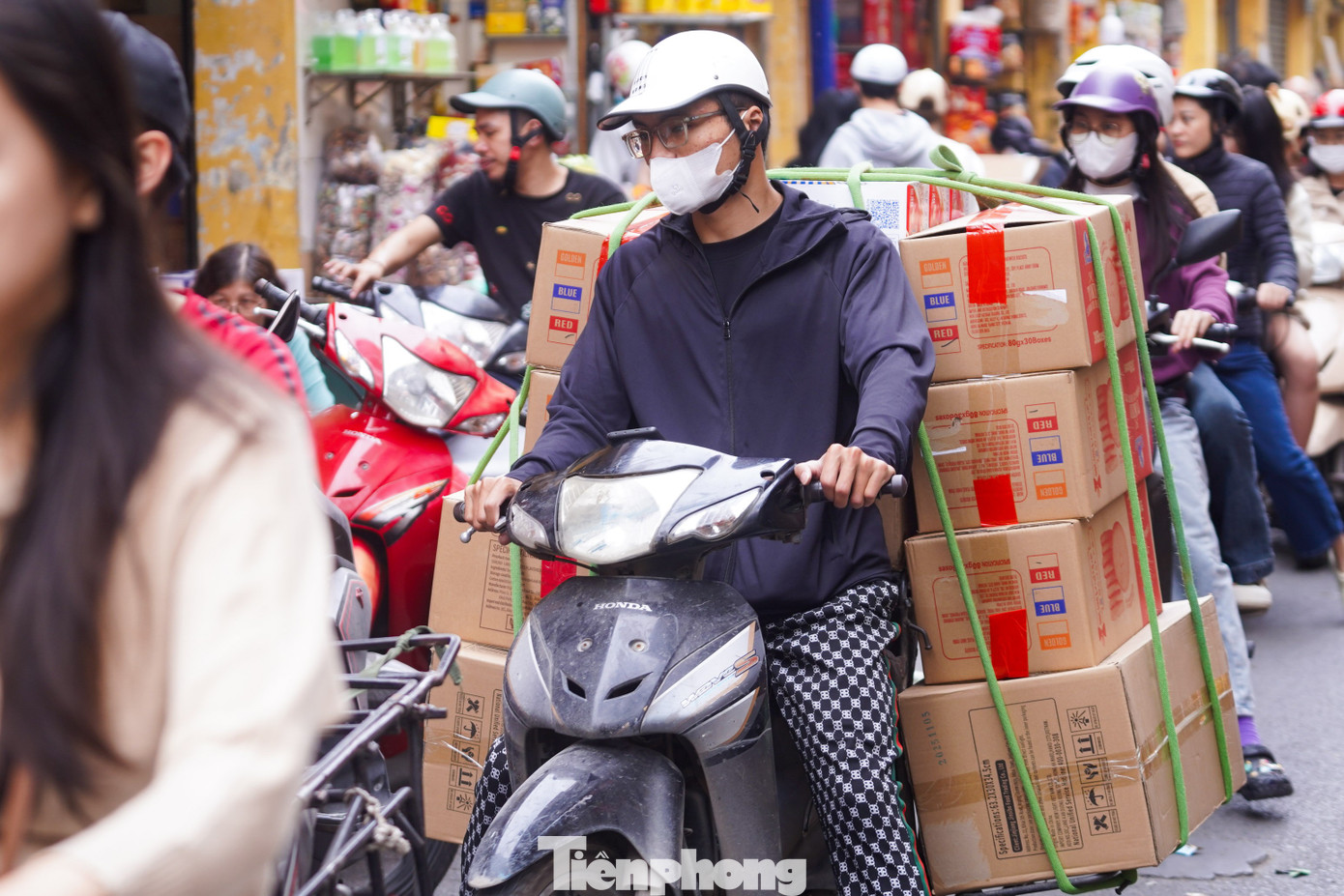 Cô Hương - tiểu thương kinh doanh bánh kẹo Tết cho biết: “Khách của tôi chủ yếu là các đơn hàng bán buôn cho doanh nghiệp hoặc người mua làm quà biếu. Ngoài bán trực tiếp tại cửa hàng, chúng tôi còn liên tục ship hàng cho khách đặt mua online nên lúc nào cũng phải luôn tay luôn chân để kịp đơn”.
