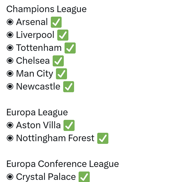 Tổng cộng, cả 9 CLB Anh góp mặt tại cúp châu Âu mùa giải 2025/26 đều giành vé vào vòng 1/8. Đây là thành tích vô cùng ấn tượng của bóng đá xứ sương mù.