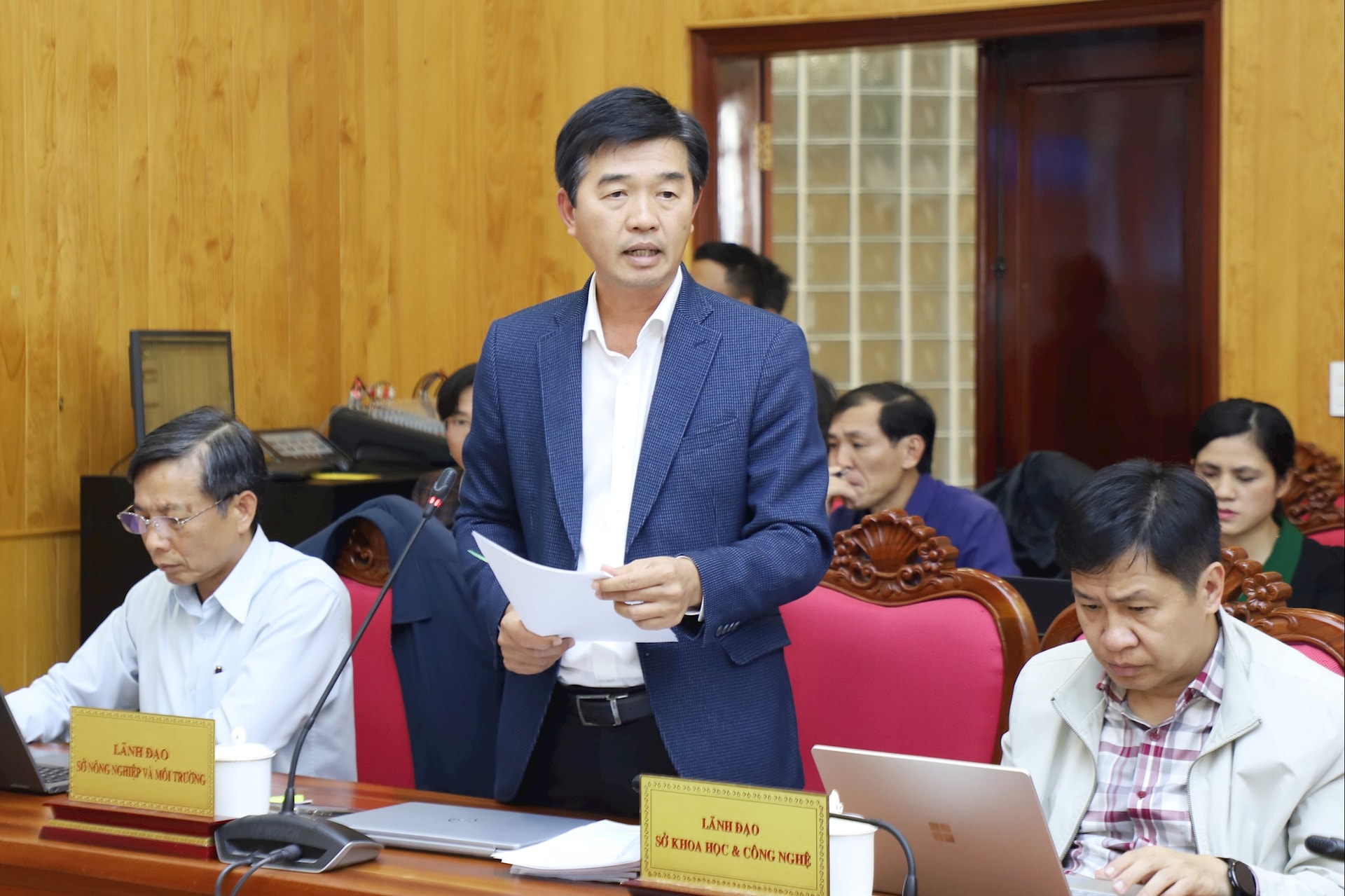 Giám đốc Sở Nông nghiệp và Môi trường Phan Nguyễn Hoàng Tân báo cáo về công tác xử lý các hành vi vi phạm IUU