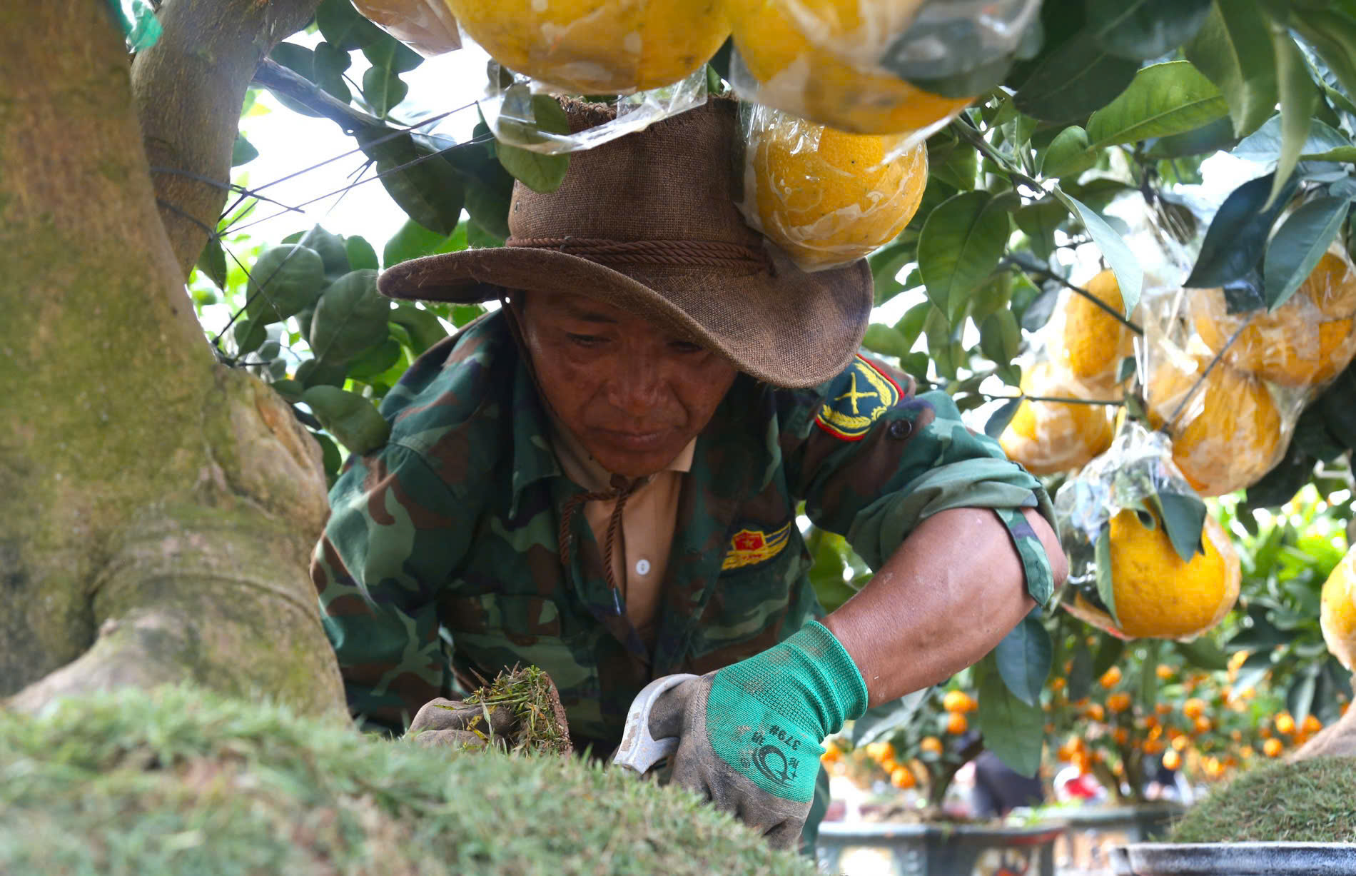 Là lao động tự do, từ đầu tháng Chạp, ông Nguyễn Sỹ Hạnh đến làm thuê cho các nhà vườn cây cảnh Tết.