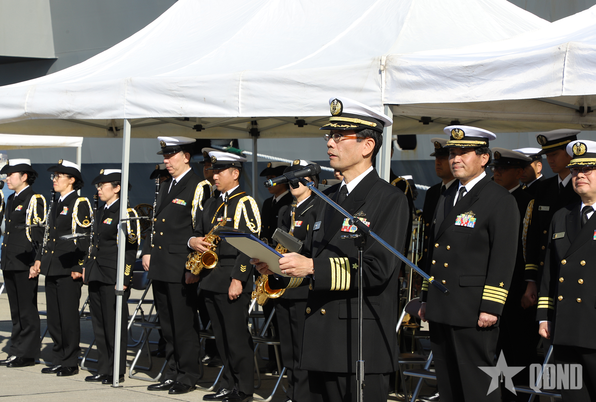 Đại tá Yanagihara, đại diện cho Căn cứ Hải quân Kure - một trong những căn cứ lớn nhất của Lực lượng Tự vệ trên biển Nhật Bản - chủ trì lễ đón đoàn công tác và cán bộ, thủy thủ Tàu 015 tại cầu cảng.