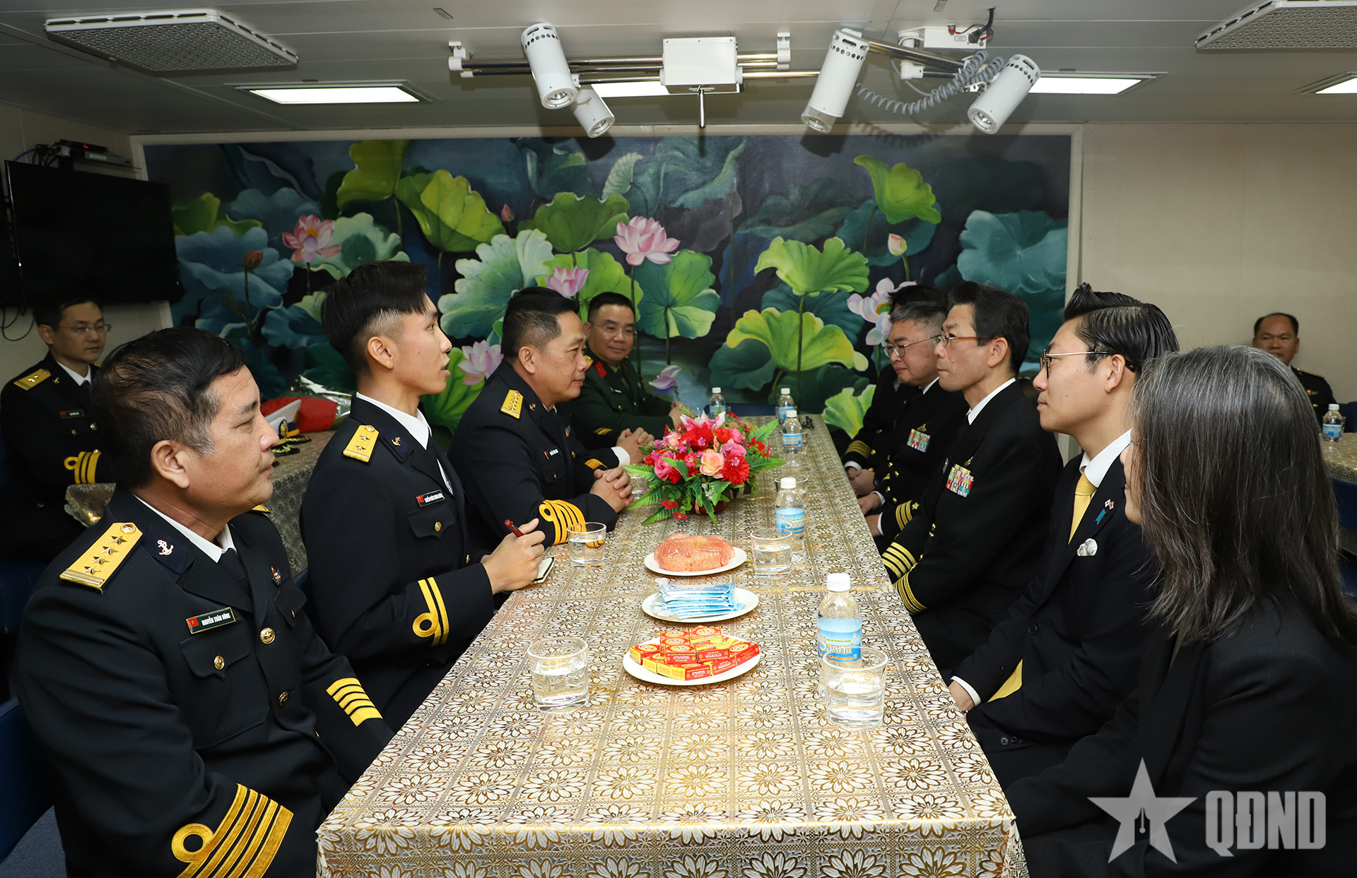 Ngay sau lễ đón, các sĩ quan hải quân Nhật Bản đã lên thăm Tàu 015-Trần Hưng Đạo và trao đổi với đoàn công tác.
