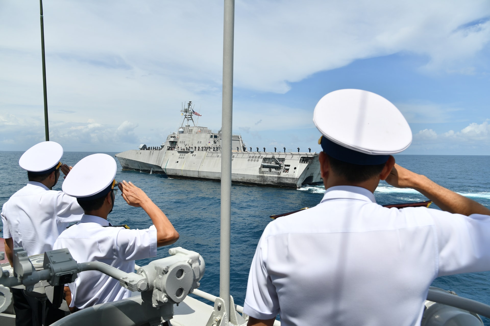 Thực hiện thủ tục chào nhau trên biển.