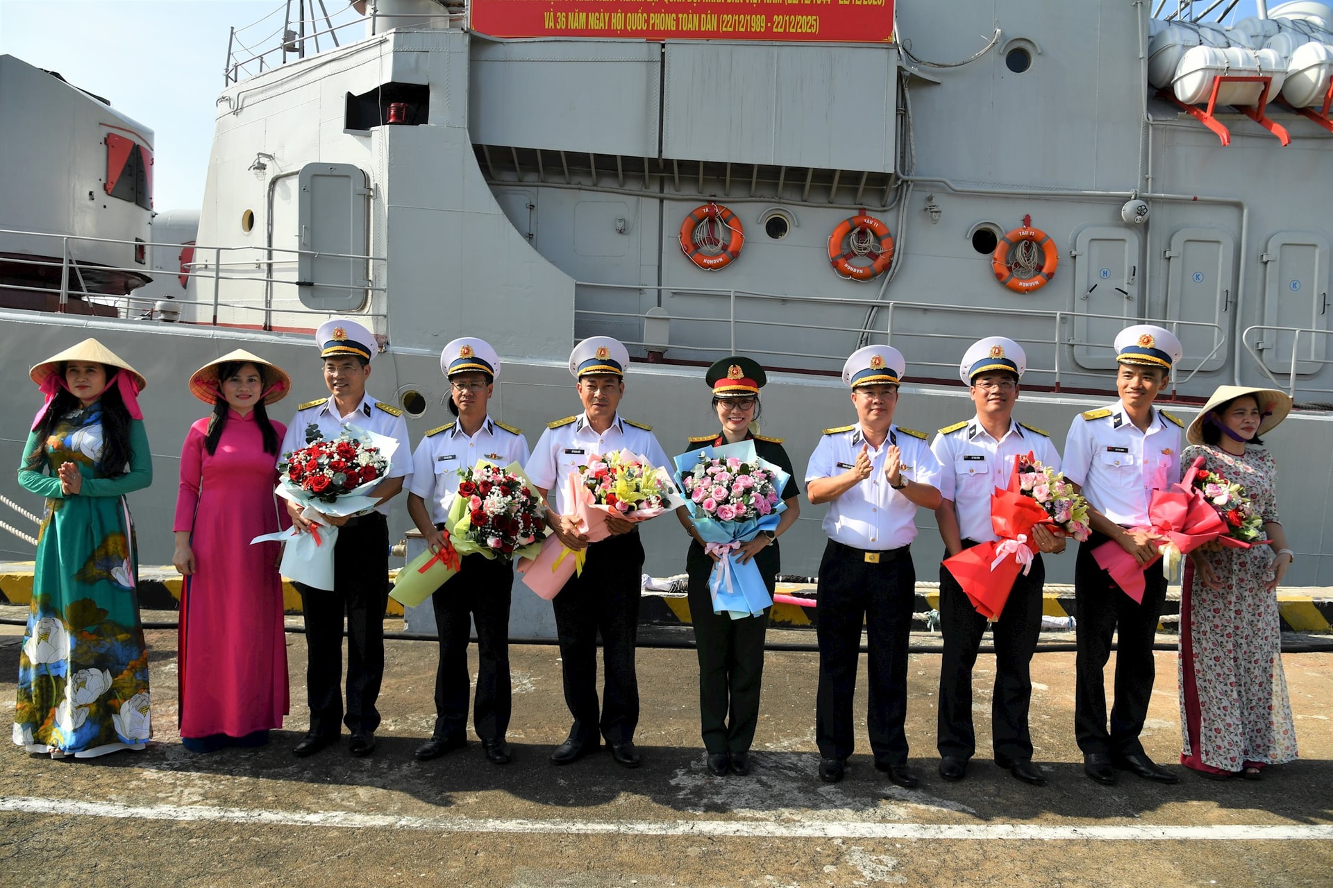 Thủ trưởng Lữ đoàn 171 tặng hoa chúc mừng Đoàn công tác và Tàu 09.