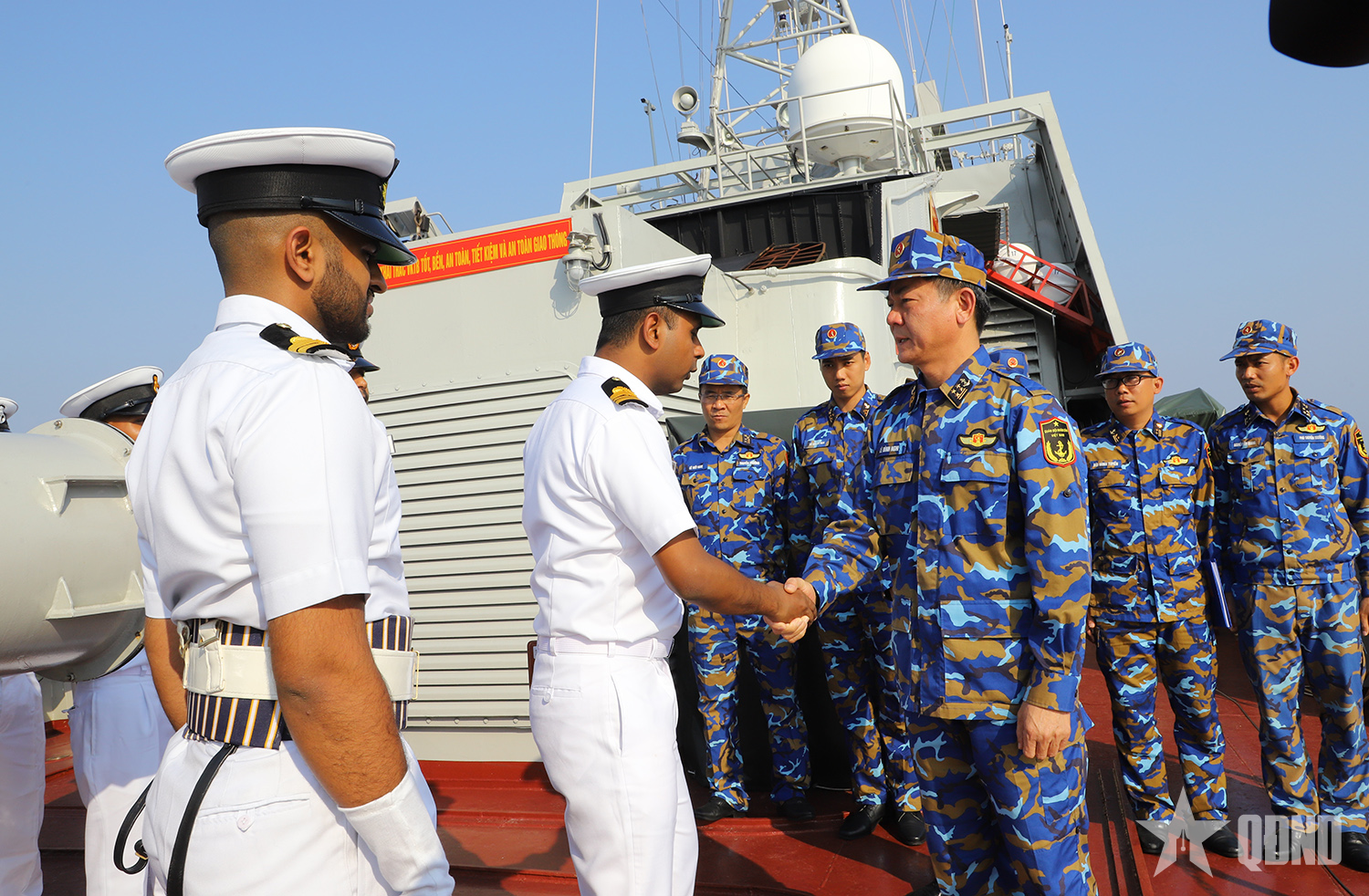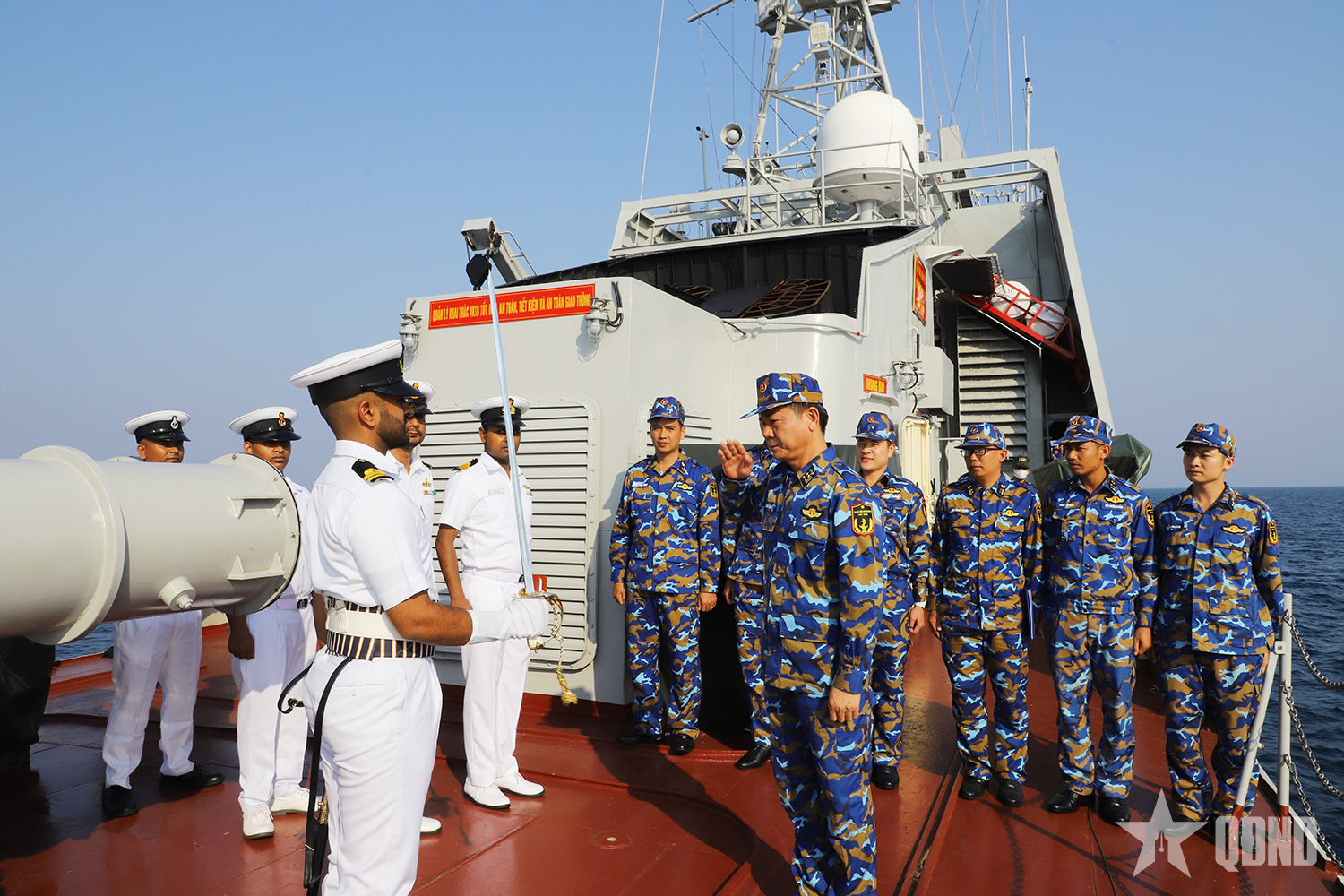 Chiều cùng ngày, đại diện Hạm đội Miền Đông của Hải quân Ấn Độ đã thực hiện nghi lễ đón đoàn công tác tại khu neo. Đại diện hai bên đã trao đổi, thống nhất các nội dung hoạt động trong khuôn khổ Diễn tập MILAN 2026.
