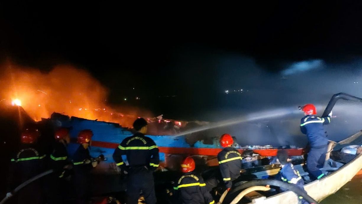 Khoảng 23 giờ 45 phút ngày 21-4, UBND phường Thuận An nhận tin báo tàu cá số hiệu TTH-45759TS, dài khoảng 14,16m, công suất 150CV, neo đậu tại cầu cập bến cơ sở sản xuất nước đá Bùi Dinh, thuộc tổ dân phố Hải Tiến, phường Thuận An, bốc cháy dữ dội.