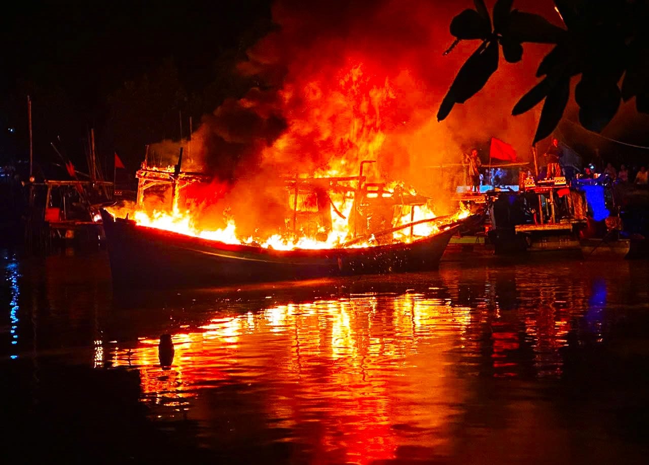 Theo thông tin ban đầu, vào lúc 20 giờ 30 phút ngày 16/11, Trạm kiểm soát Biên phòng Đá Bạc (Đồn Biên phòng Sông Đốc) nhận được tin báo của người dân về việc tàu cá cá CM 05450 TS của ông Nguyễn Văn Quy (41 tuổi, ngụ ấp Sào Lưới, xã Đá Bạc, Cà Mau) đang neo đậu tại cửa biển Sào Lưới (xã Đá Bạc, tỉnh Cà Mau) bị cháy.