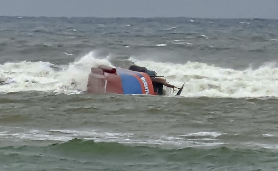 Trong quá trình di chuyển qua khu vực cửa biển, tàu bị mắc cạn giữa điều kiện sóng to, gió lớn. Đến khoảng 7h cùng ngày, phương tiện bị sóng đánh chìm tại khu vực cách bờ biển Mỹ Cảnh khoảng 100m về phía Bắc.