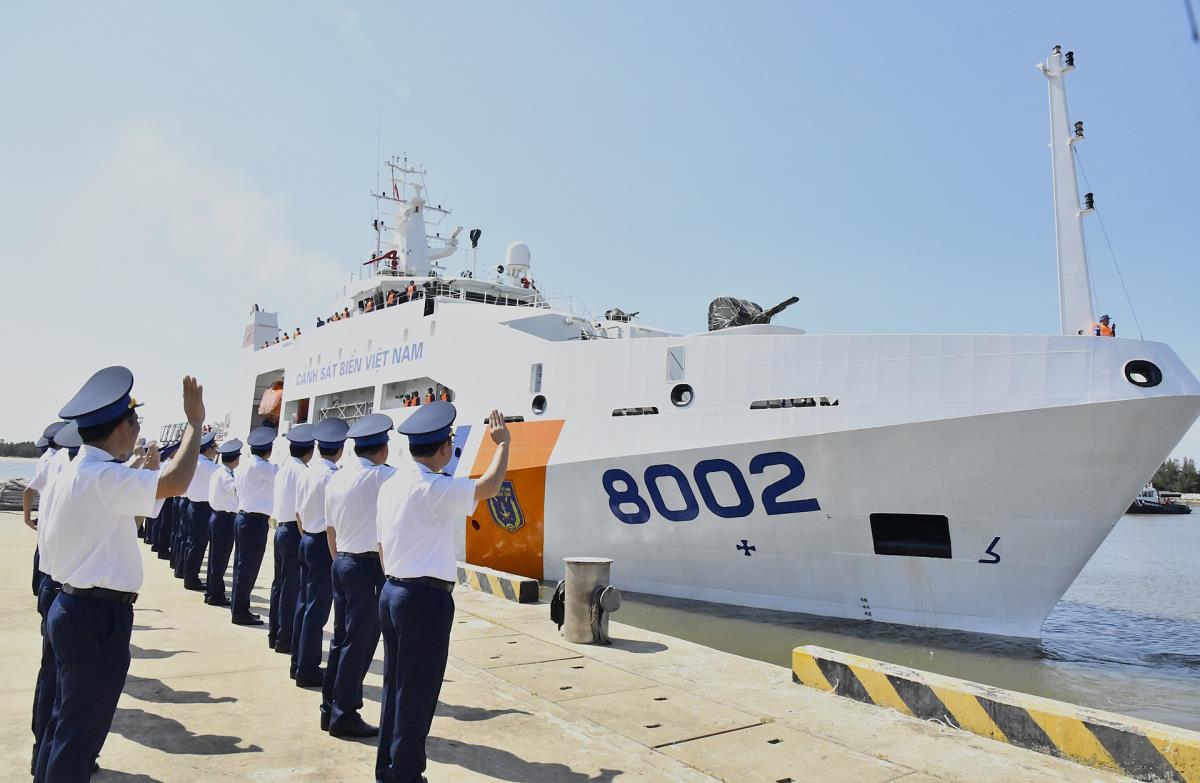 Cán bộ, chiến sỹ Bộ tư lệnh Vùng Cảnh sát biển 2 tiễn tàu CSB 8002.