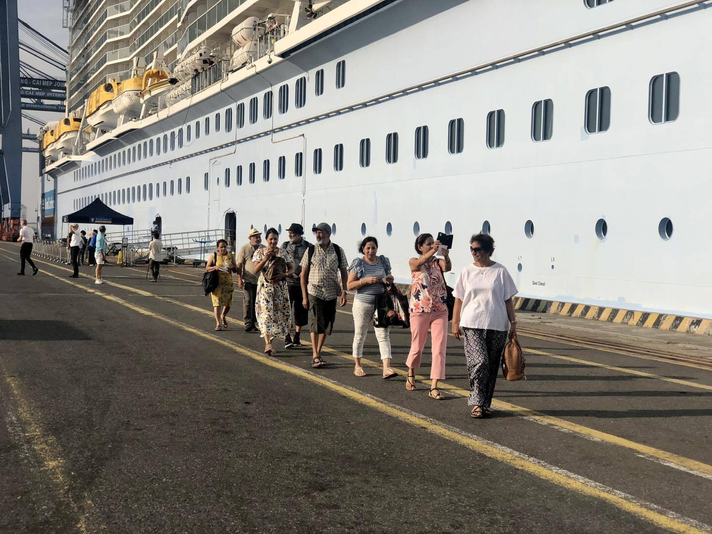 Một đoàn khách quốc tế đi tàu biển cập cảng Phú Mỹ tham quan TP.HCM trước khi có quy định tạm dừng. (Ảnh: Bích Chi)
