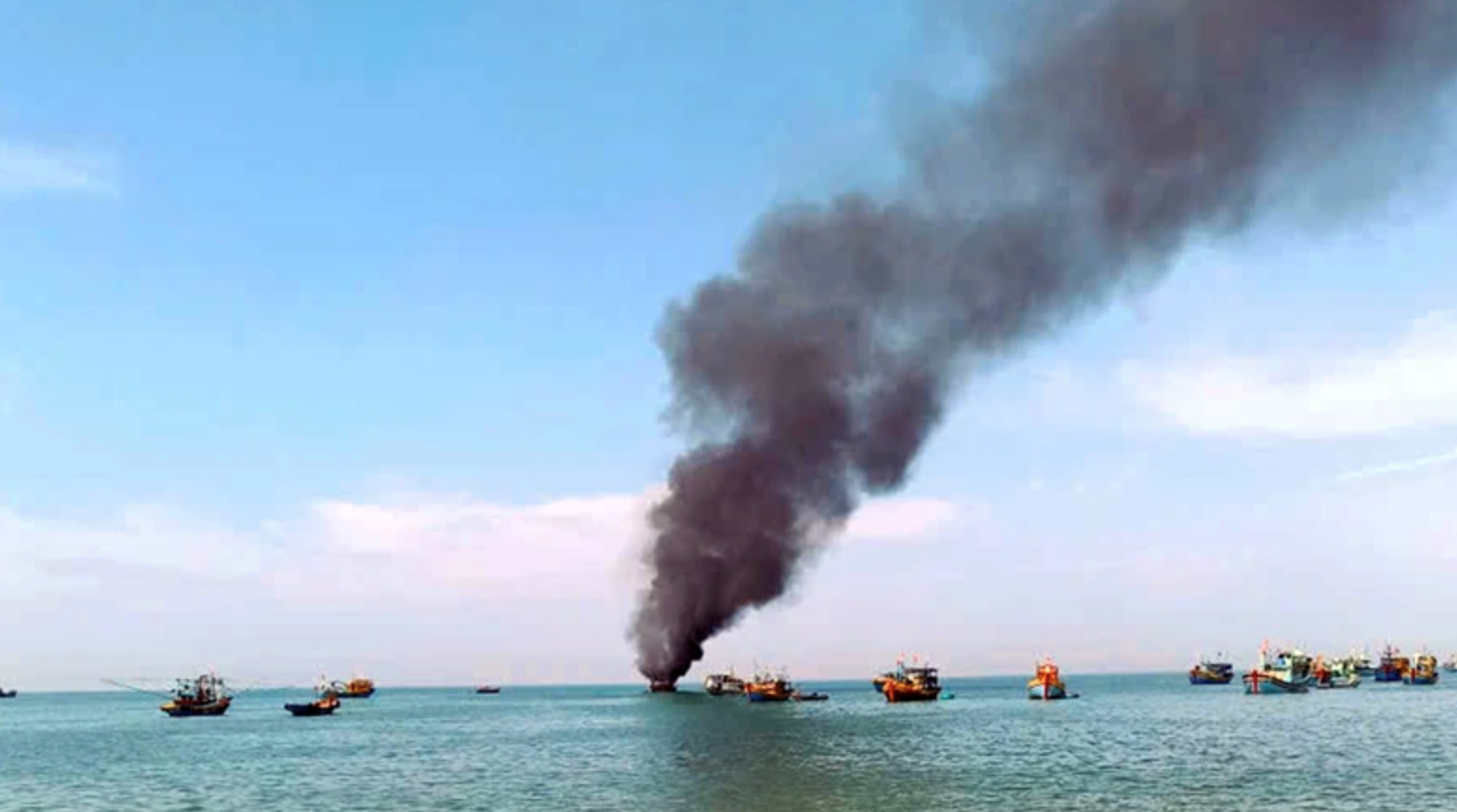 Do tàu gặp sự cố kỹ thuật nên được neo gần bờ để sửa chữa. Trong quá trình khắc phục, thợ sửa chữa sử dụng hàn điện thì bất ngờ xảy ra hỏa hoạn, khiến con tàu bốc cháy dữ dội.