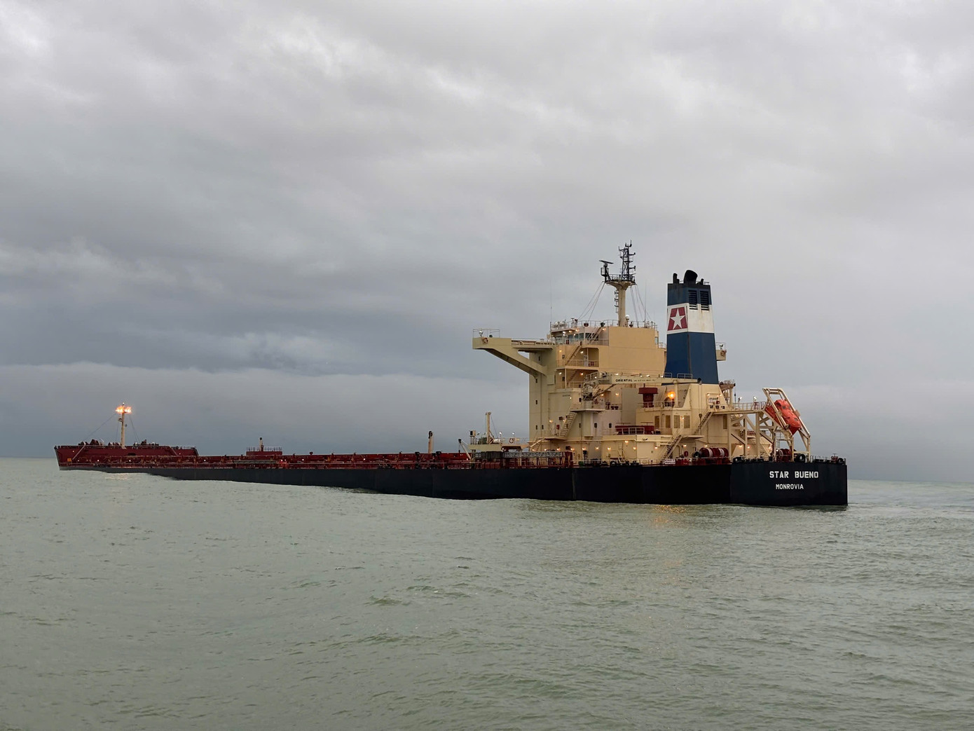 Trước đó vào ngày 24/10, tàu quốc tịch Liberia của Công ty TNHH TM & LOGISTIC Thái Bình Dương - đại lý tàu biển của tàu STAR BUENO, chở 22 thuyền viên (quốc tịch Philippines, Ukraine), hành trình từ Nam Phi đến cảng Dung Quất cùng gần 175.000 tấn quặng sắt, nhập cảnh Việt Nam.