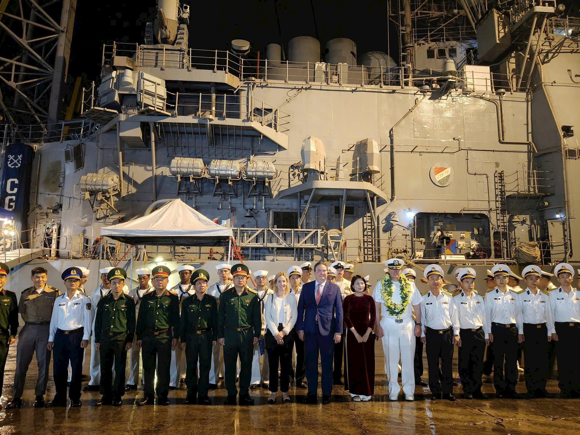Tại cảng Tiên Sa, TP. Đà Nẵng long trọng đón đội tàu Hải quân Mỹ gồm tàu đổ bộ USS Tripoli (LHA-7) và tàu tuần dương USS Robert Smalls, với hơn 2.000 sĩ quan, thủy thủ do Chuẩn đô đốc Thomas Shultz dẫn đầu.