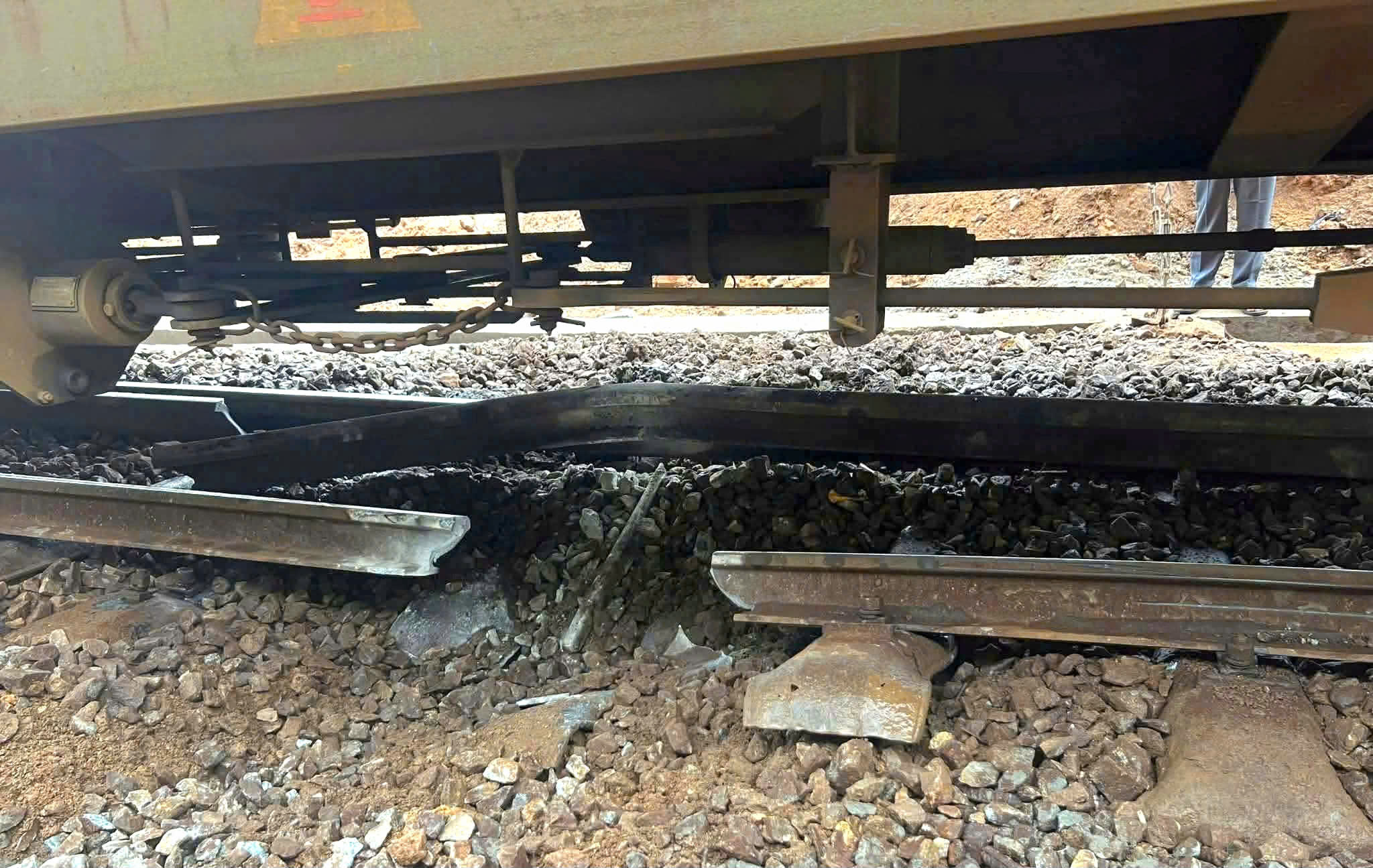 Thanh ray phía bên phải hướng tàu chạy bị cong vẹo, đứt gãy khiến tàu bị kẹt, không thể lưu thông. Nguyên nhân bước đầu được xác định là do đá trên đèo Hải Vân rơi xuống làm gãy đường ray.