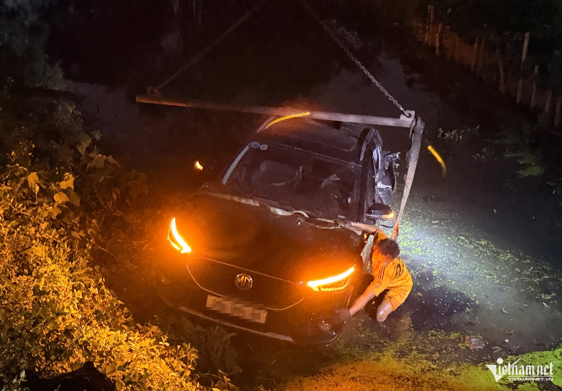 Ô tô gặp nạn được lực lượng cứu hộ đưa lên bờ