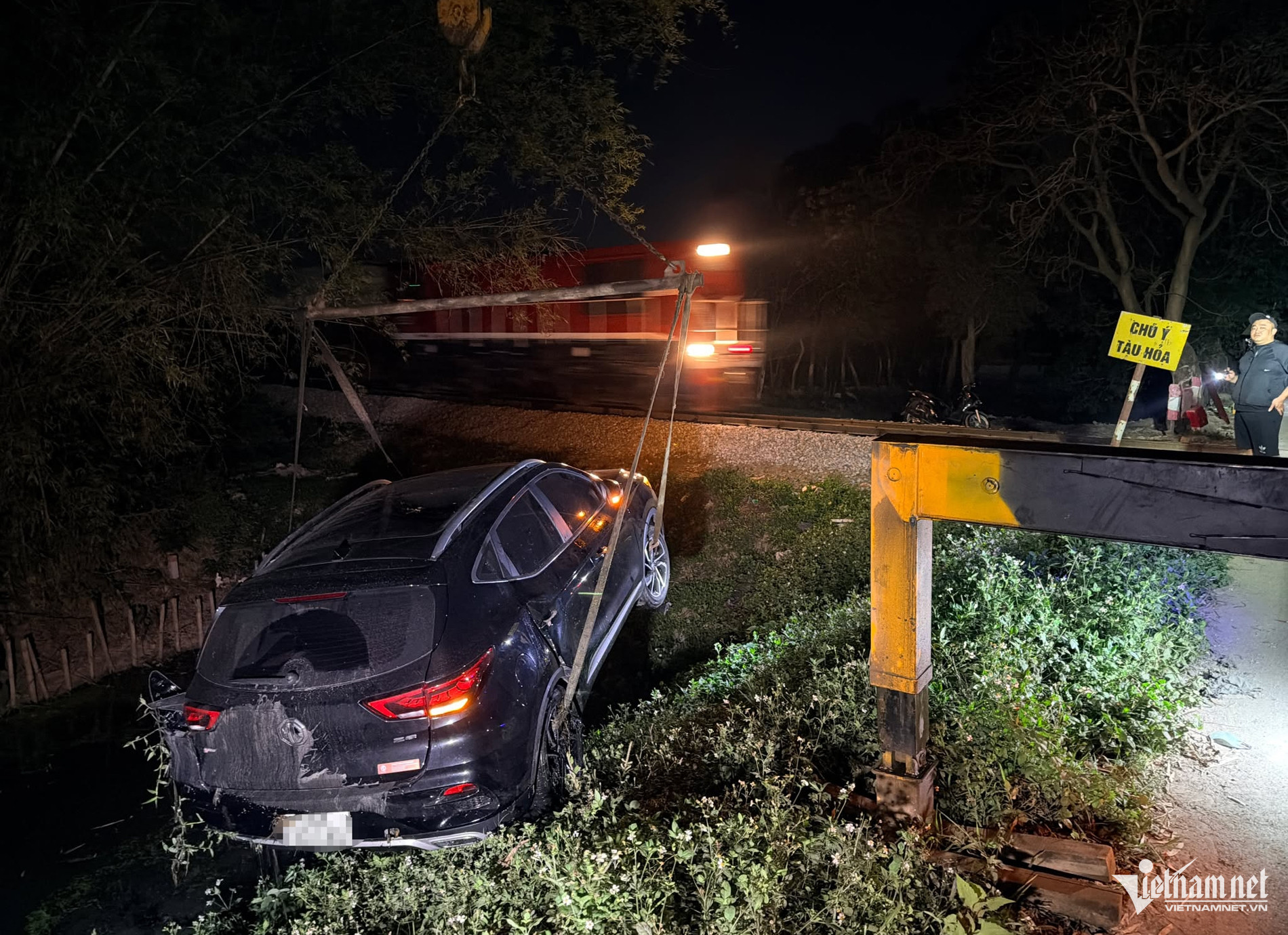 Ô tô bị tàu hỏa đâm văng xuống mương nước