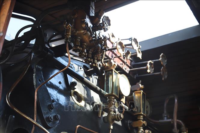 Bên trong đầu tàu hỏa hơi nước.