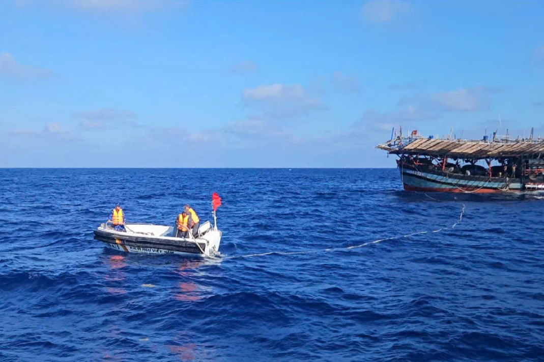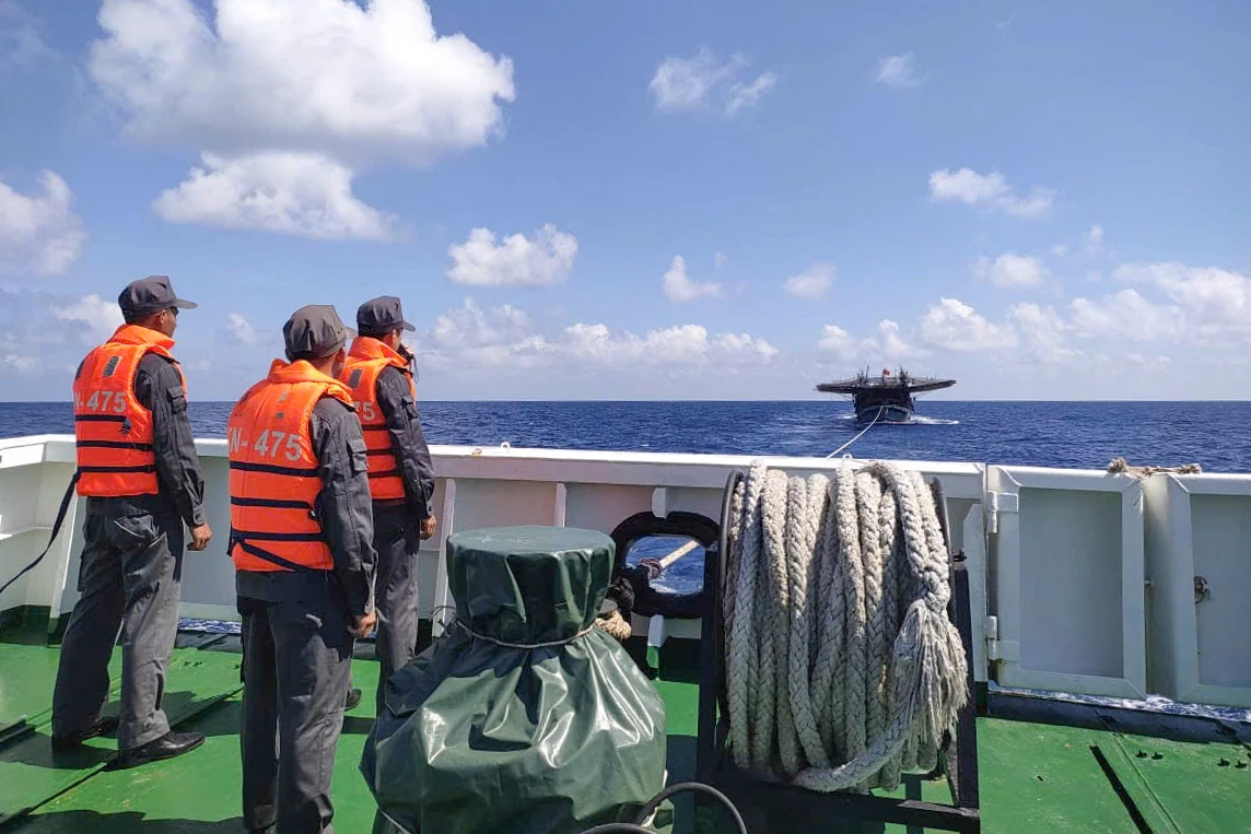 Ngày 5-4, tàu kiểm ngư 475 (KN475), Chi đội Kiểm ngư số 4 đã tiến hành cứu hộ, lai dắt một tàu cá ngư dân tỉnh Quảng Ngãi về đảo Đá Tây A an toàn.